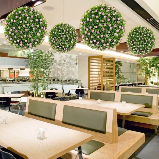 As bolas decorativas artificiais vêm com folhas verdes em degradê exuberantes, criando uma aparência mais atraente e vibrante. Ao contrário de outras sem flores, a nossa apresenta lindas flores rosas, que certamente adicionarão um toque de cor que iluminará instantaneamente o ambiente. Feita de material PE à prova de sol e sem odor, nossa planta de bola verde artificial foi projetada para resistir a ambientes internos e externos. Mais importante ainda, a esfera de jardim artificial não requer manutenção, mantendo a vitalidade durante todo o ano. Você pode pendurá-las para criar um visual extravagante ou colocá-las no chão para um toque de aconchego. Além disso, você pode colocá-las em um vaso de flores redondo ou quadrado com uma abertura superior de 38 cm. Portanto, as bolas de buxo em dois pacotes podem ser amplamente utilizadas em casa, no escritório, em casamentos ou no jardim. Além disso, a fácil montagem deixará suas mãos livres. Destaque: Aparência realista e requintada: Cada bola de planta artificial ostenta folhas verdes em degradê intrincadamente desenhadas, criando um impacto visual denso e vibrante. Além disso, as folhas são adornadas com rosas cor-de-rosa. Estas flores encantadoras trazem uma explosão de cor que eleva instantaneamente o ambiente de qualquer espaço. Material de PE Premium: As bolas artificiais de topiaria são feitas de material de PE à prova de sol, que não desbota facilmente com o uso prolongado ao ar livre. Além disso, o material selecionado não emite odores desagradáveis, permitindo o uso interno sem preocupações. Sem necessidade de manutenção: Ao contrário das plantas reais que serão afetadas pelo clima, estas bolas artificiais de buxo manterão a vibração por anos. Além disso, não é necessária rega, poda ou exposição ao sol para manter sua aparência vívida. Infinitas opções de exibição: As bolas de plantas artificiais penduradas podem ser penduradas no telhado para realçar o ambiente da sua casa, cafeteria ou salão de exposições. Ou você pode colocá-las em um vaso rústico para refletir seu estilo. Além disso, as bolas decorativas artificiais podem ser colocadas no chão para casamentos ou festas ao ar livre. Montagem rápida e dica útil: Cada bola de planta artificial é composta por 2 semicírculos fáceis de montar conectados por 8 clipes. Se o item estiver ligeiramente deformado devido ao transporte, separe as folhas para restaurar a forma. Características: O material PE de alta qualidade não desbota, é fácil de manter e não tem odor Adequado para ambientes internos e externos com o material de proteção solar Comparado a outros com 3 camadas de folhas, o nosso apresenta folhas abundantes de 4 camadas Ao contrário de outras bolas de esfera falsas com folhas verdes opacas, a nossa apresenta folhas brilhantes Sem aparar, sem regar, sem fertilizar e sem luz solar necessária Acomoda vaso de flores quadrado ou redondo com uma abertura superior de 38 cm Fácil de instalar com conectores interligados Perfeito para qualquer ambiente, como restaurante, jardim, varanda da frente