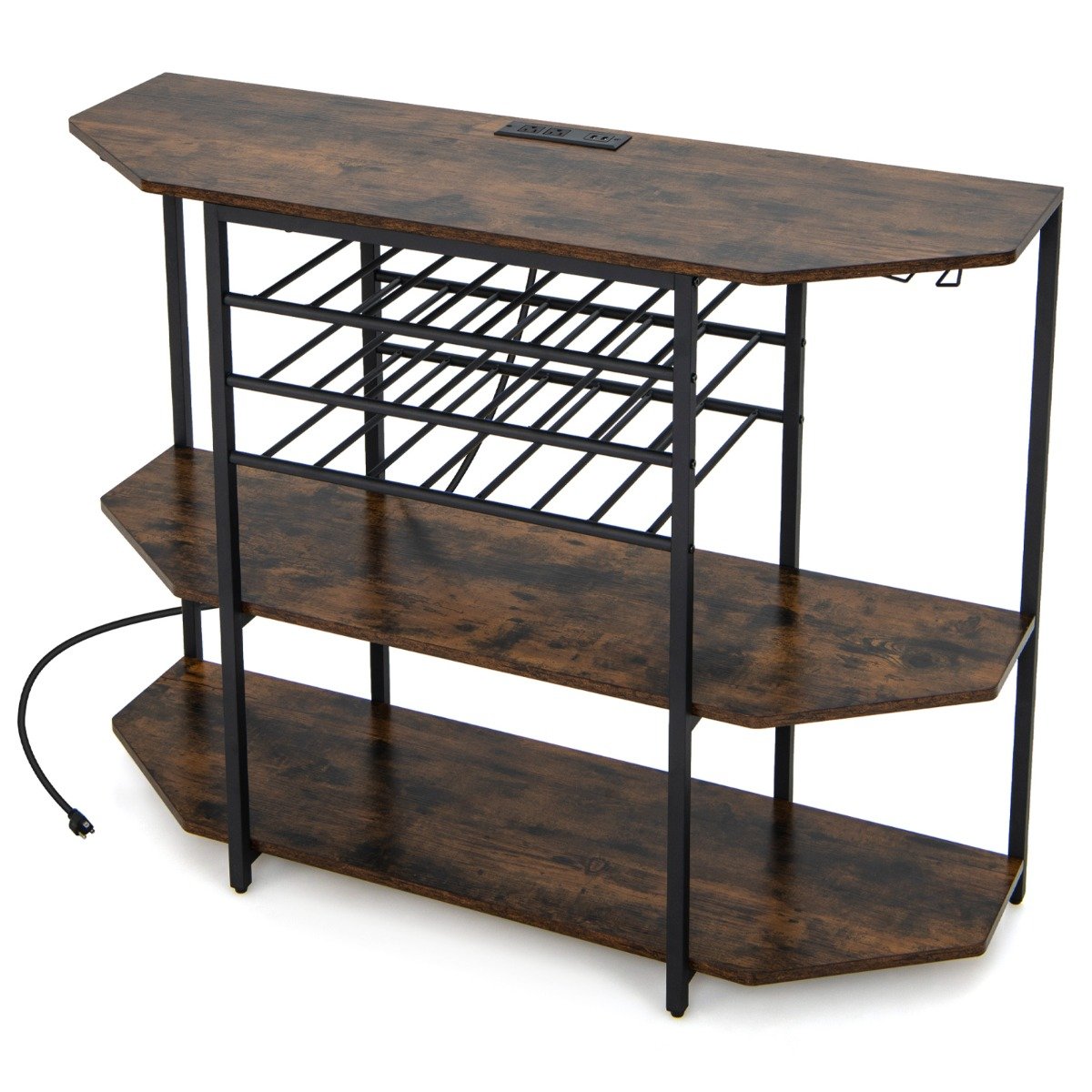 Adega Industrial de 3 Níveis com Tomadas, Suporte para Garrafas e Porta-Taças – Armário para Bar de Vinhos Marrom