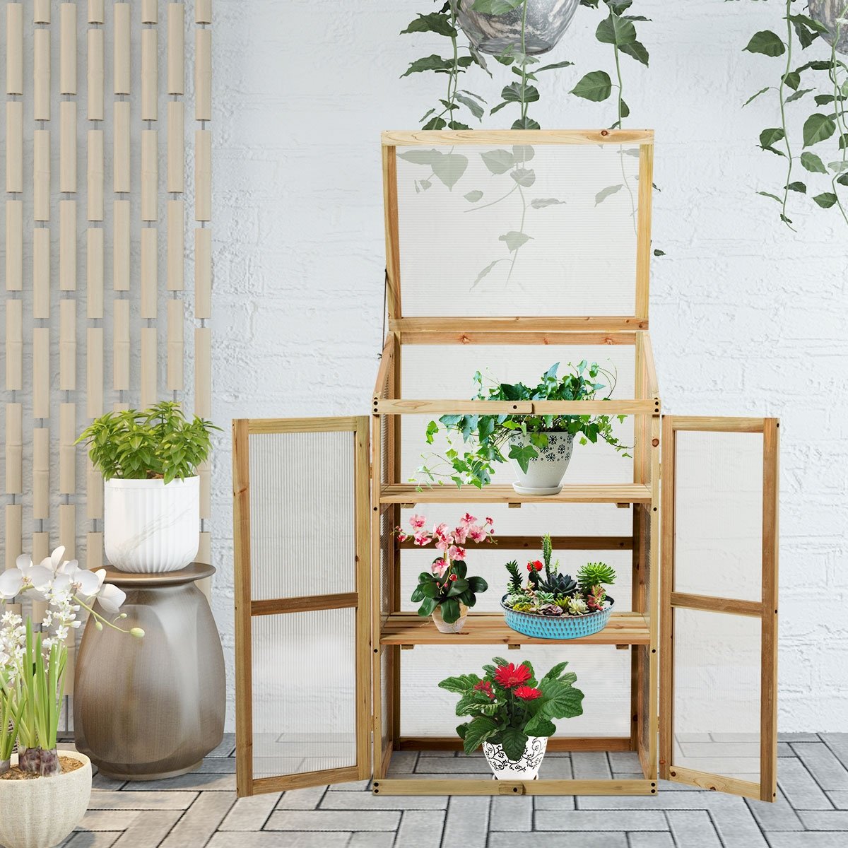 Estufa de madeira de 3 níveis para jardim, varanda ou quintal.