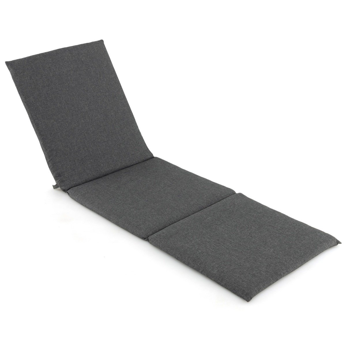 Almofada dobrável para espreguiçadeira de exterior com tiras de fixação - Cinza escuroAlmofada dobrável para espreguiçadeira de exterior com tiras de fixação – Cinza escuro