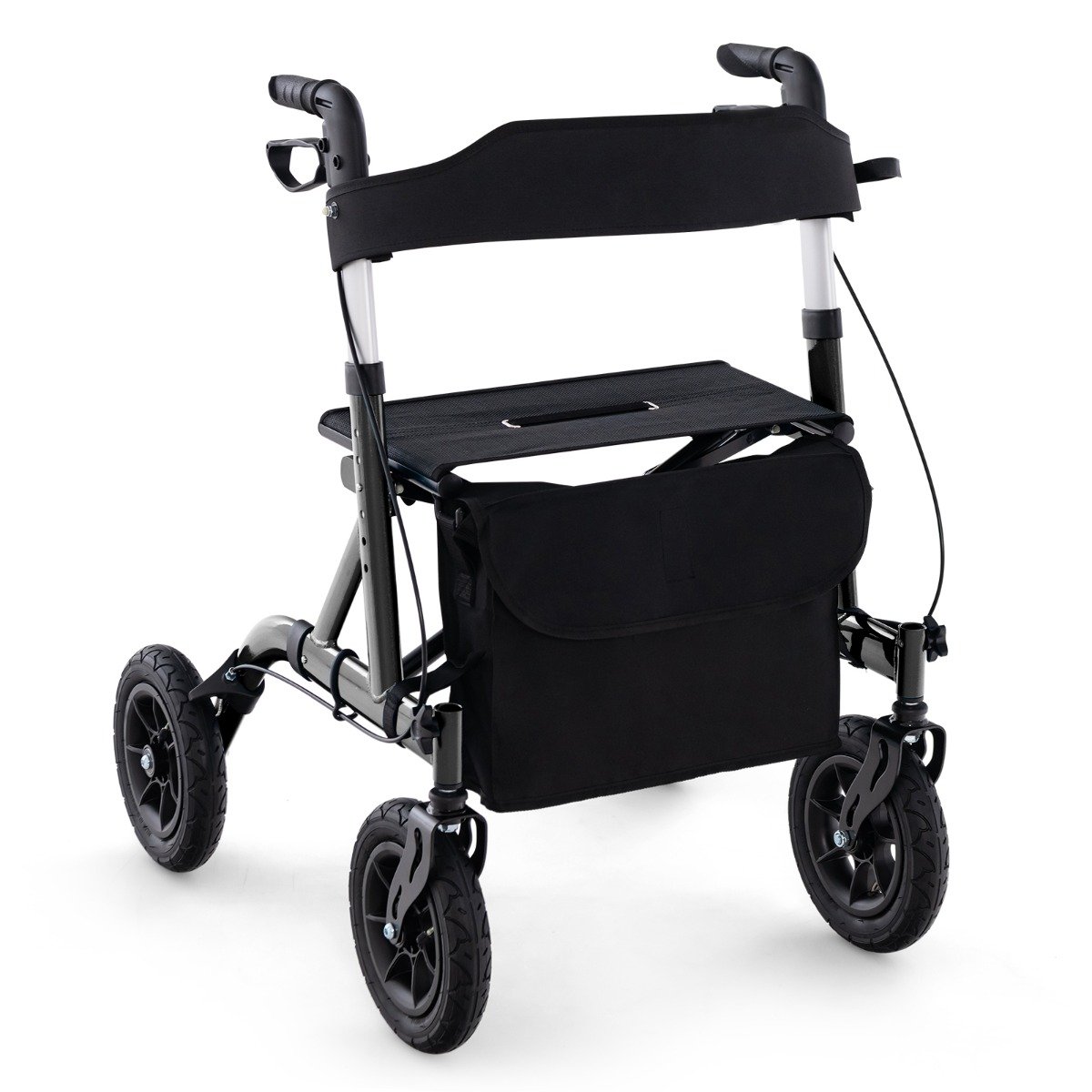 Andador dobrável com rodas e assento – Preto