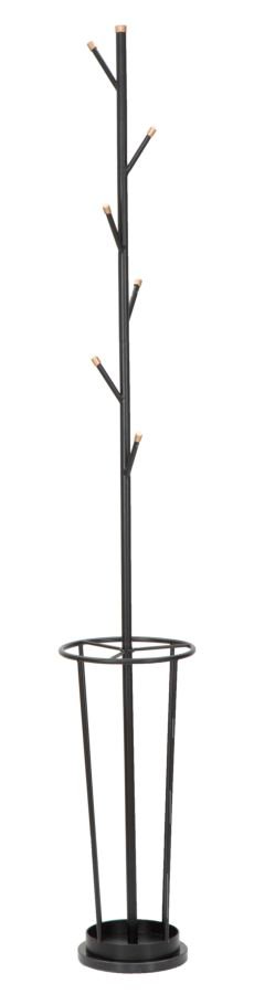 Cabide de metal preto completo com suporte redondo para guarda-chuvas de linhas simples e essenciais adequado para qualquer entrada.