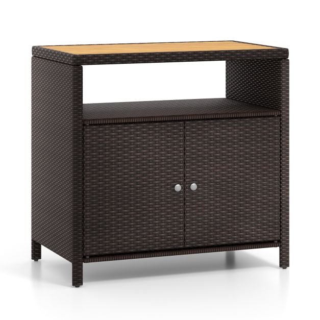 Armário de armazenamento de vime com bancada de madeira de acácia para deck de piscina e pátio – cinza