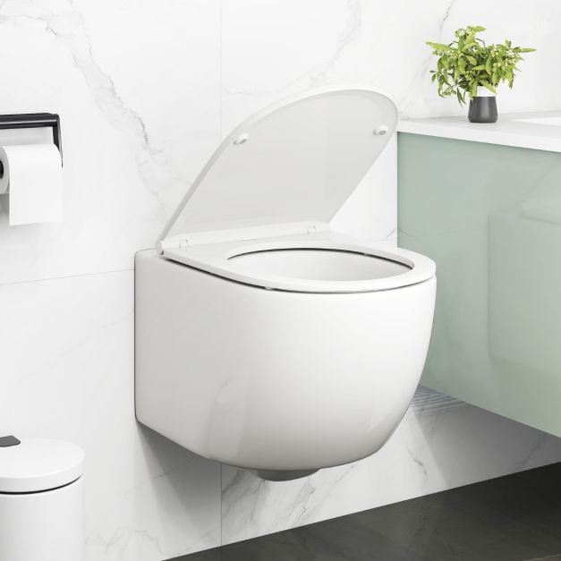 Atualize seu banheiro pequeno com este vaso sanitário de parede que economiza espaço. Este vaso sanitário de parede possui um sistema de descarga dupla para conservação de água e um assento de fechamento suave para maior segurança e discrição. Você desfrutará de uma limpeza fácil graças ao design sem aro e ao assento de liberação rápida. O hardware de montagem e um kit de parafuso de assento estão incluídos para fácil instalação. Observação: O tanque de água NÃO está incluído. Atributos: 【Design que economiza espaço】Este vaso sanitário suspenso economiza espaço no chão em comparação com vasos sanitários montados no chão, tornando-o ideal para banheiros pequenos. Este design flutuante também permite uma limpeza impecável em todos os cantos, criando um ambiente limpo e organizado. 【Sistema de descarga dupla】Projetado com a conservação de água em mente, este vaso sanitário de parede possui um sistema de descarga dupla de 4L/6L que permite que você escolha o volume de descarga apropriado dependendo da situação. 【Detalhes bem feitos】O assento de fechamento suave fecha suavemente sem bater, proporcionando uma experiência de banheiro mais segura e silenciosa. Além disso, este vaso sanitário suspenso é revestido com verniz de alta qualidade e fácil de limpar, garantindo brilho e higiene duradouros. 【Sem cantos inacessíveis para limpeza】O vaso sanitário foi projetado sem aro para garantir que não haja cantos inacessíveis para limpeza. Além disso, o recurso de liberação rápida do assento também permite fácil remoção para uma limpeza conveniente, promovendo melhor higiene. 【O que está incluído】Este vaso sanitário e assento sanitário vêm com acessórios de montagem e um kit de parafusos para assento sanitário para garantir uma instalação estável e segura. Observe que o tanque de água NÃO está incluído e deve ser adquirido separadamente. Características: Economiza espaço no chão com um design de montagem na parede O sistema de descarga dupla melhora a eficiência da água O assento de fechamento suave reduz o ruído A capa do assento sanitário de ureia-formaldeído não é facilmente danificada A descarga potente limpa eficazmente a parede interna O design sem aro garante que não haja cantos inacessíveis para limpeza Feito com um acabamento suave e fácil de limpar Inclui hardware de montagem e kit de parafusos para assento sanitário