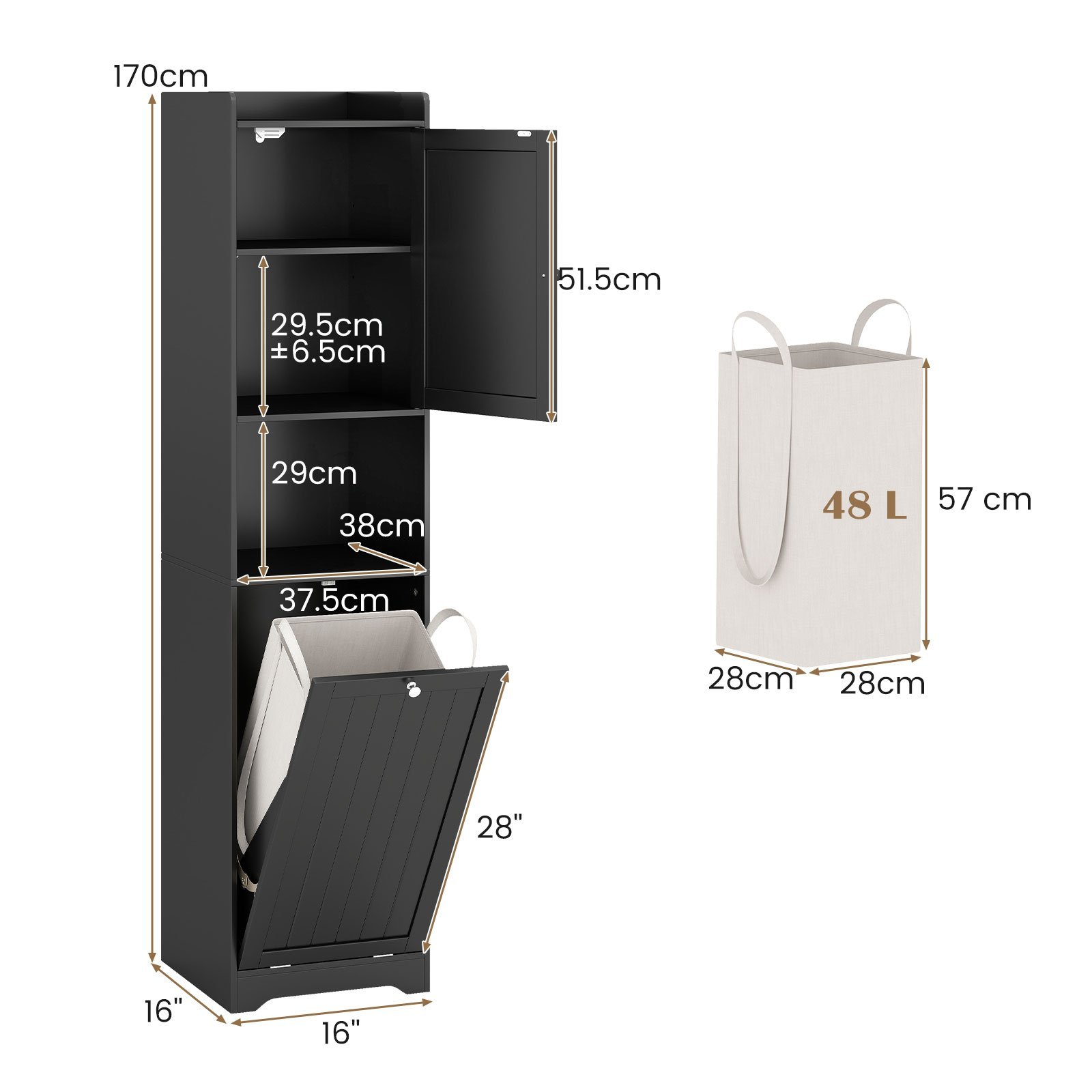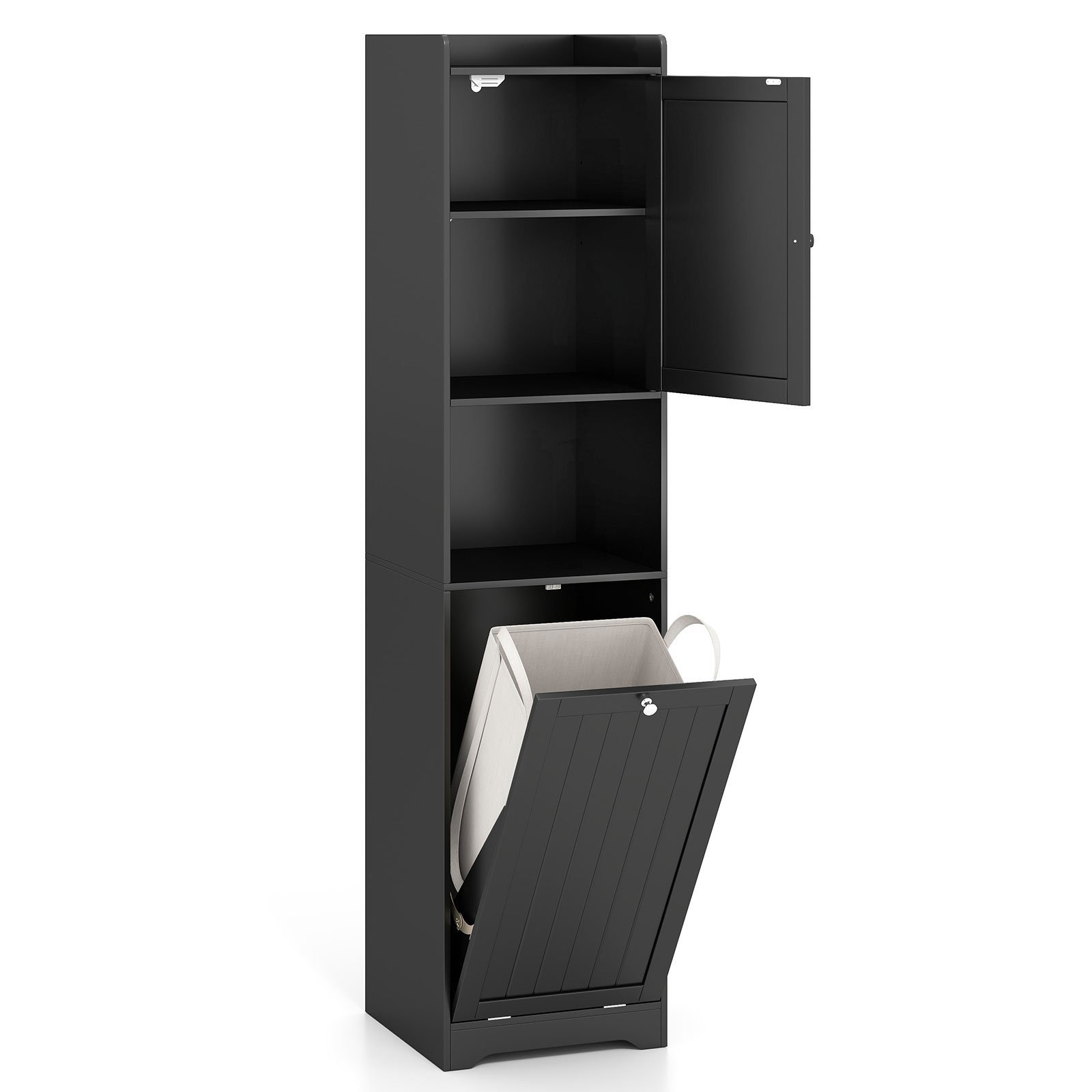 Armário alto para banheiro com cesto de roupa suja e prateleira ajustável, armário para banheiro, armário para banheiro preto