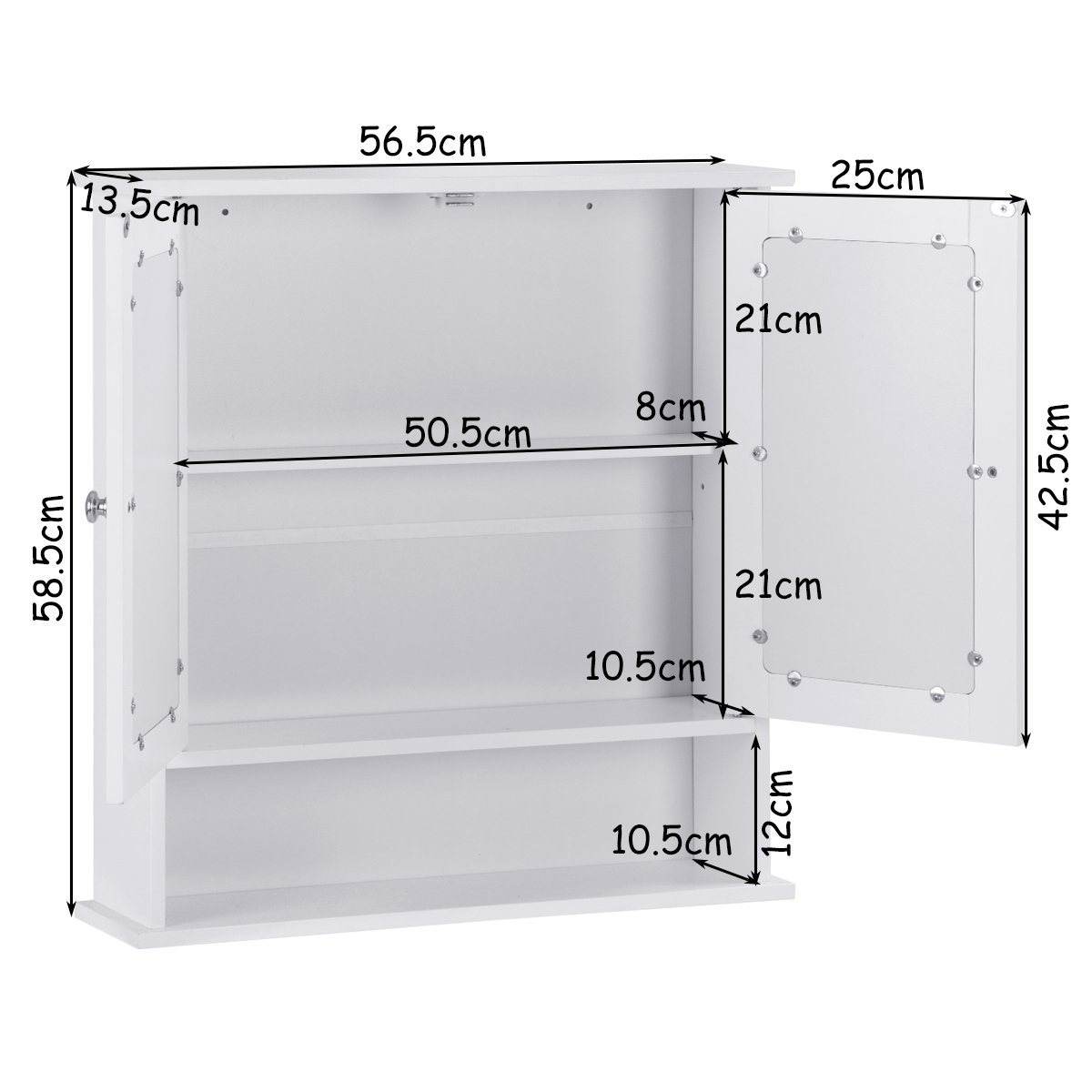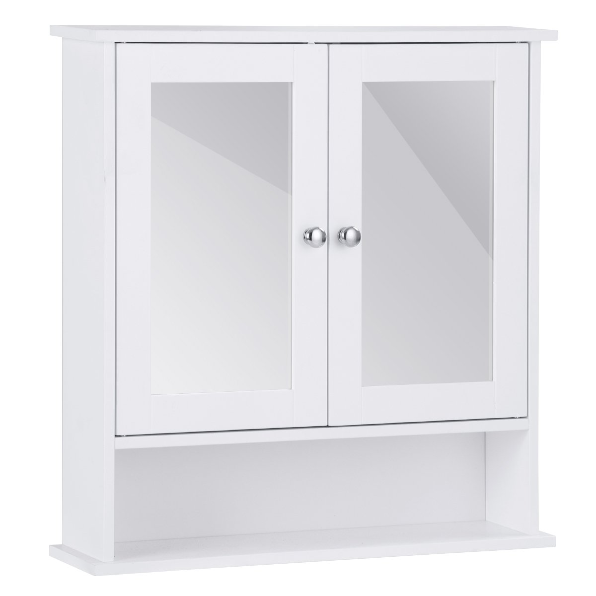 O armário de parede economiza espaço para sala de estar, banheiro, etc. Para sua conveniência, ambas as portas têm um espelho para vestir diariamente. Se você está procurando um organizador de medicamentos como este, não hesite em fazer um pedido! ● Design de parede para economizar espaço: o armário de remédios pode ser simplesmente fixado na parede para transformar sua parede vazia em sua casa em um espaço prático, fornecendo armazenamento extra sem ocupar espaço valioso no chão. O design de parede maximiza o espaço do seu quarto, o que permite que você deixe seu lugar limpo. ● Amplo espaço de armazenamento com prateleira ajustável: o armário fechado superior armazena seus itens de forma organizada e privada. Além disso, a prateleira interna pode ser ajustada em 3 posições para atender a diferentes necessidades de altura. E o compartimento aberto inferior pode colocar itens usados com frequência, como sabonete, toalhas, gel de banho, etc. ● Portas duplas com espelhos: este armário de banheiro possui 2 portas com batente magnético, mantendo a porta fechada firmemente e com segurança quando não estiver em uso. Além disso, os espelhos embutidos de alta definição em ambas as portas oferecem mais conveniência para sua maquiagem ou barbear diários. ● Construção robusta e durável: O armário de parede é feito de material MDF premium, que é robusto, resistente ao desgaste e durável para ter forte capacidade de carga. Além disso, o armário do espelho é revestido com pintura NC, que é atóxica e inodora para uso seguro. ● Estilo elegante para ampla aplicação: Com estilo simples e elegante, esta unidade de armazenamento de parede pode ser integrada perfeitamente à decoração da sua casa. Combinado com praticidade e estética, o armário é ideal para banheiro, sala de estar, cozinha, corredor e outros lugares.