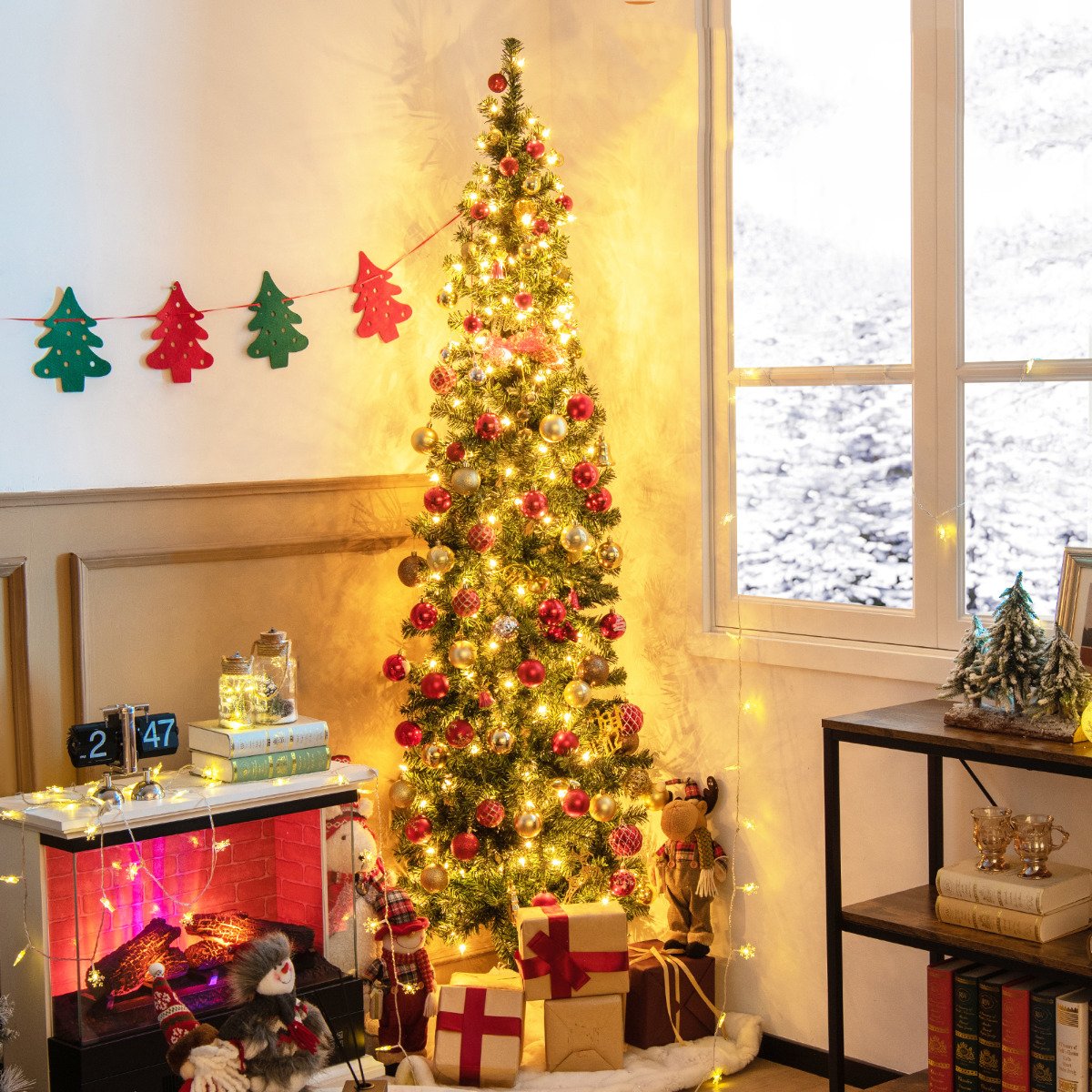 Que o brilho da árvore de Natal ilumine seus dias natalinos com alegria! Nossa árvore de Natal iluminada de 210 cm de comprimento adota um formato compacto que ocupa pouco espaço, oferecendo uma aparência cheia e realista. Ideal para cantos apertados ou áreas com espaço limitado, ela trará mais originalidade à sua casa. Além disso, a árvore de Natal iluminada possui 150 luzes LED brancas quentes distribuídas uniformemente pelos galhos, adicionando efeitos de iluminação brilhantes na noite de Natal. São 450 pontas de galhos densas que formam uma árvore de Natal artificial realista, que imita com perfeição a aparência de uma árvore verdadeira. As folhas são feitas de PVC 100% novo, um material não inflamável, resistente a rachaduras e durável, garantindo longa vida útil. Para facilitar o armazenamento, a árvore pode ser facilmente desmontada em 3 partes e um suporte de metal dobrável. Esta árvore de Natal requintada adicionará elegância a qualquer ambiente e se tornará um ponto focal atraente! Características: Formato Único e Compacto: A árvore de Natal iluminada de 210 cm de altura apresenta um formato único e requintado de meia árvore, que pode ser colocada na parede para economizar espaço no chão sem perder o verdadeiro significado do Natal. É ideal para decorar cantos estreitos ou cômodos pequenos, criando uma atmosfera natalina em qualquer lugar. Aparência Densa e Realista: A árvore de Natal em formato de meia árvore possui 450 pontas de galhos densas, que contribuem para uma aparência cheia e vibrante. Além disso, as pontas dos galhos são feitas de PVC 100% novo, um material retardante de chamas, inodoro e antialérgico, garantindo segurança durante o uso. Luzes Brancas Quentes e Brilhantes: Equipada com 150 luzes de LED brancas quentes distribuídas uniformemente ao longo dos galhos, a árvore de Natal pré-iluminada cria uma atmosfera aconchegante e alegre para as suas festas de Natal. Inclui também 2 lâmpadas de LED e um fusível de reposição para o caso de alguma queimar. SUPORTE DE METAL RESISTENTE E DOBRÁVEL: A árvore de Natal de 210 cm de altura é sustentada por uma base de metal robusta que oferece forte apoio e mantém a árvore ereta e estável. Além disso, ela pode ser dobrada, ficando plana, e a árvore pode ser dividida em 3 seções, facilitando o armazenamento. Decoração de Natal Maravilhosa: A árvore de Natal iluminada em formato de meia árvore, sem enfeites, permitirá que você desfrute de momentos felizes e doces com sua família. Ela também pode ser uma decoração maravilhosa para lareira, varanda, sala de estar, escritório, jardim, festa, restaurante, escola e muito mais. Características: O design exclusivo em formato de meia árvore economiza espaço para acomodar diferentes presentes. 450 pontas de galhos macias e realistas ajudam a imitar uma árvore de Natal completa e verdadeira. Feita de PVC 100% virgem, segura, não inflamável, inodora e antialérgica. 150 luzes de LED emitem uma luz suave e criam uma atmosfera aconchegante em sua casa. Inclui 2 lâmpadas de LED intercambiáveis e um fusível reserva substituível. A base de metal resistente oferece amplo suporte e equilíbrio, garantindo estabilidade. A base de metal se dobra facilmente, ficando compacta para armazenamento. A árvore de Natal de 3 peças é fácil de montar e desmontar.