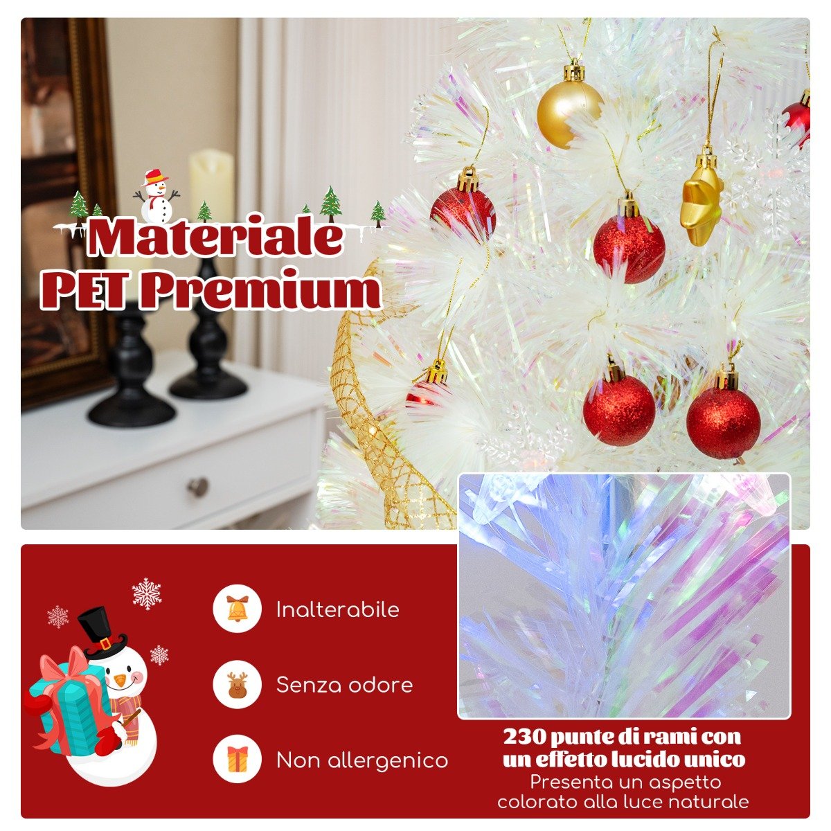 Árvore de Natal artificial de 210 cm com luzes LED coloridas, fibra óptica e topo de estrela, branco