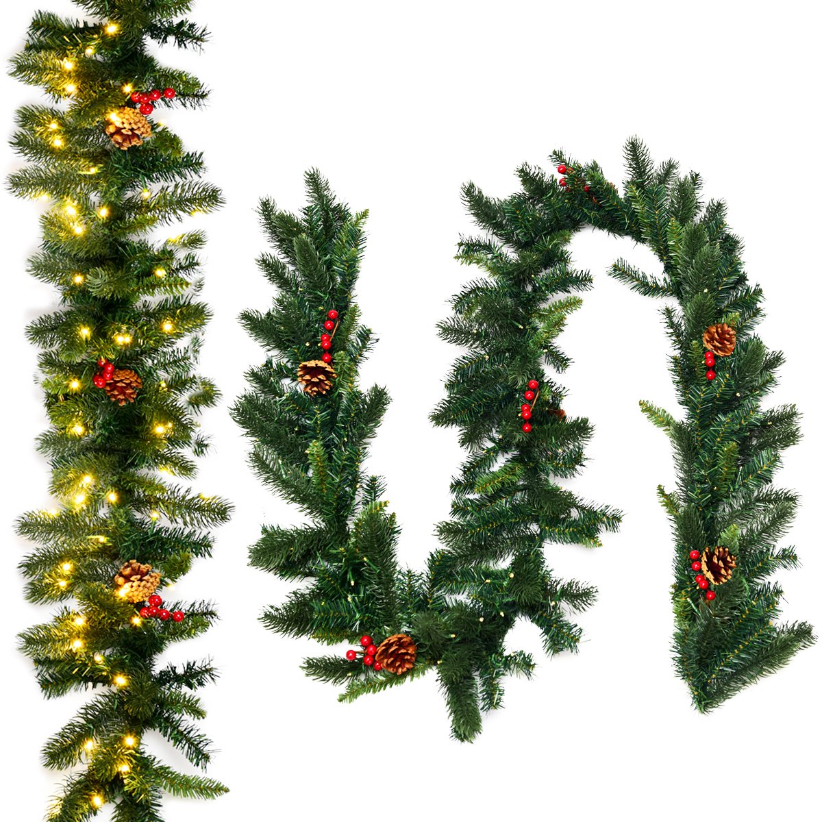 A guirlanda de Natal pré-iluminada de 270 cm serve para acompanhá-lo durante o Natal. A mistura de PE verde claro e pontas de PVC tradicionais fornece uma aparência nova que durará toda a temporada. Contendo 100 luzes LED, o rattan de Natal fornecerá um espaço colorido e brilhante para você, o que também traz calor ao inverno. Quando a noite cai, você pode ligar a luz e então será a decoração mais atraente. Com o temporizador, é conveniente controlar a luz também. Com pinhas e frutas vermelhas, não há necessidade de decorações extras. Ela oferece diferentes elementos de Natal e torna o festival mais alegre. Então, seja pendurado na parede dentro ou fora de casa, certamente fornecerá vitalidade e calor para você. Ponto de bala: Rattan de Natal exuberante: Nossa guirlanda artificial pré-iluminada apresenta uma mistura de PE verde claro e pontas de PVC tradicionais, fornecendo uma aparência nova que durará toda a temporada. Cor verde simples, pinhas e galhos grossos aumentarão a aparência vívida da árvore e ela sempre será a coisa mais atraente na sua festa de Natal! 100 Luzes Pré-iluminadas Brancas Quentes: O rattan de Natal vem com 100 luzes LED, trazendo brilho duradouro. Você pode ligar as luzes e então adquirir uma guirlanda brilhante e colorida, que também adicionará mais alegria ao Natal. Com a ajuda de um temporizador alimentado por 3 pilhas AA (pilha não incluída), você pode controlar livremente a luz. Ornamentos Ricos e Detalhes do Festival: Galhos exuberantes, pinhas e frutas vermelhas, esses elementos do festival decoram todo o rattan, o que proporciona uma forte atmosfera de Natal, sem necessidade de comprar outras decorações. Além disso, torna sua decoração a mais fina e atraente. Materiais Premium: Feita de materiais de PE e PVC de alta qualidade, a guirlanda de pinho caracteriza durabilidade para mantê-la cheia em vez de deformar. Os materiais de PVC são totalmente sem toxicidade e também apresentam firmeza. Além disso, o material de PVC 100% novo também é inodoro, sem cheiro. Adequado para todos os cenários: o design elegante e festivo o torna uma decoração ideal para qualquer ambiente, como restaurantes, hotéis, escolas, etc., e serve para trazer alegria aos festivais. Equipado com luzes LED, o rattan proporcionará uma atmosfera festiva acolhedora tanto em ambientes internos quanto externos. Características: Perfeito para decoração interna e externa 100 luzes LED brancas quentes tornam-no mais atraente Luzes LED operadas por bateria com temporizador integrado de 6 horas ligado/18 horas desligado Feito de materiais de PVC e PE, o rattan é durável 140 pontas de PVC e 60 galhos de PE, mostrando uma aparência cheia e exuberante Com ornamentos ricos, o rattan traz uma atmosfera mais alegre Design leve, é fácil de levar e conveniente para a mão Especificações: Cor: Verde Material: Novo PVC + PE Peso líquido: 1,2 kg Comprimento: 270 cm Número de luz LED: 100 Número de pontas de PVC: 140 pontas Número de pontas de PE: 60 pontas O pacote inclui: 1 x guirlanda de Natal pré-iluminada