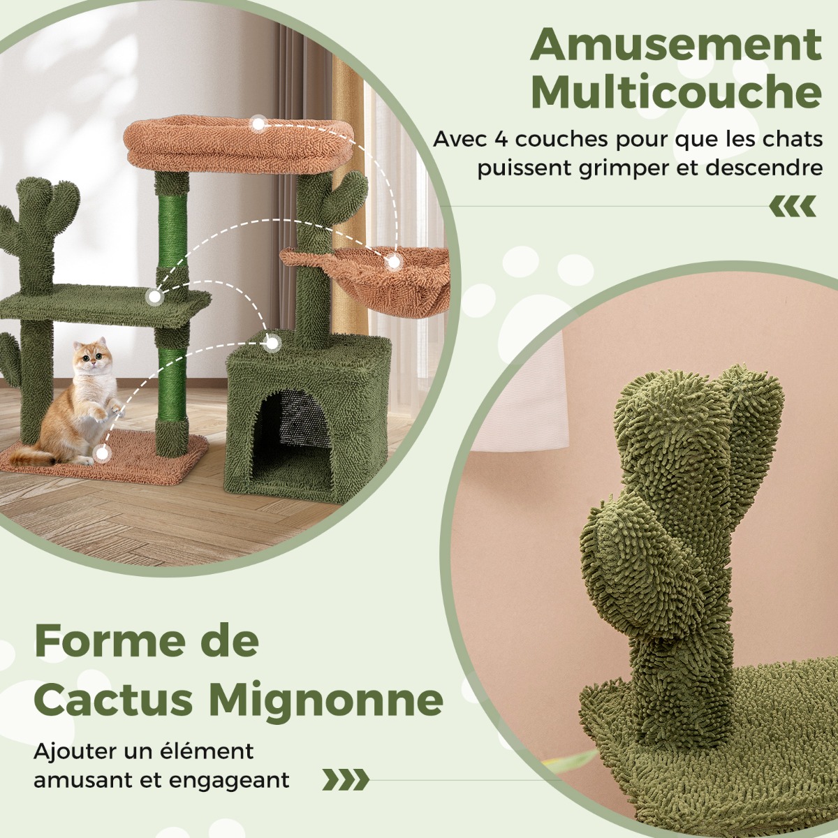 Árvore para gatos em forma de cacto com plataforma, rede e toca para gatos, verde e marrom (81 cm de altura)