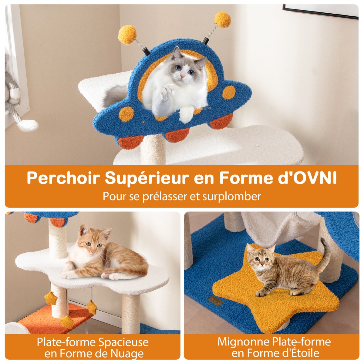 Árvore para gatos de 124 cm de altura com poleiro superior em formato de cápsula espacial em formato de OVNI e postes de sisal para arranhar – Azul