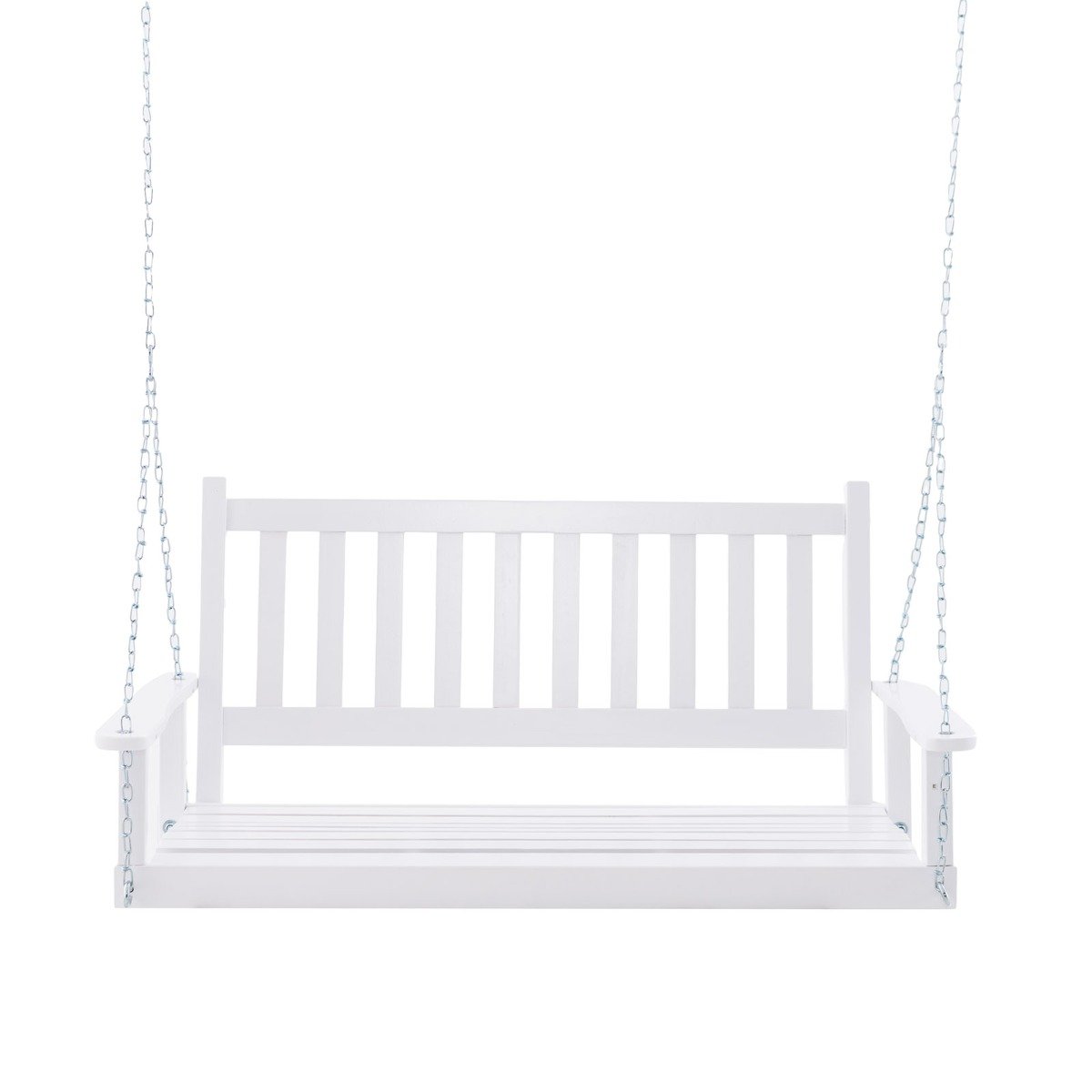-Material de madeira maciça premium para durabilidade e estabilidade superiores -Acomoda até 2 pessoas e suporta até 227 kg -Correntes longas de metal e ganchos resistentes em forma de S para balanço seguro -Encosto inclinado, assento curvo e apoios de braços aconchegantes aumentam o conforto -Superfície de ripas faz você se sentir fresco -Orifícios de conexão dos apoios de braços para fácil pendurar -Visual simples para ampla aplicação -Ideal para uso interno e externo -Orifícios de conexão dos apoios de braços para pendurar convenientemente -Adequado para varanda, jardim, parque, quintal, etc. -Fácil de montar com instruções detalhadas
