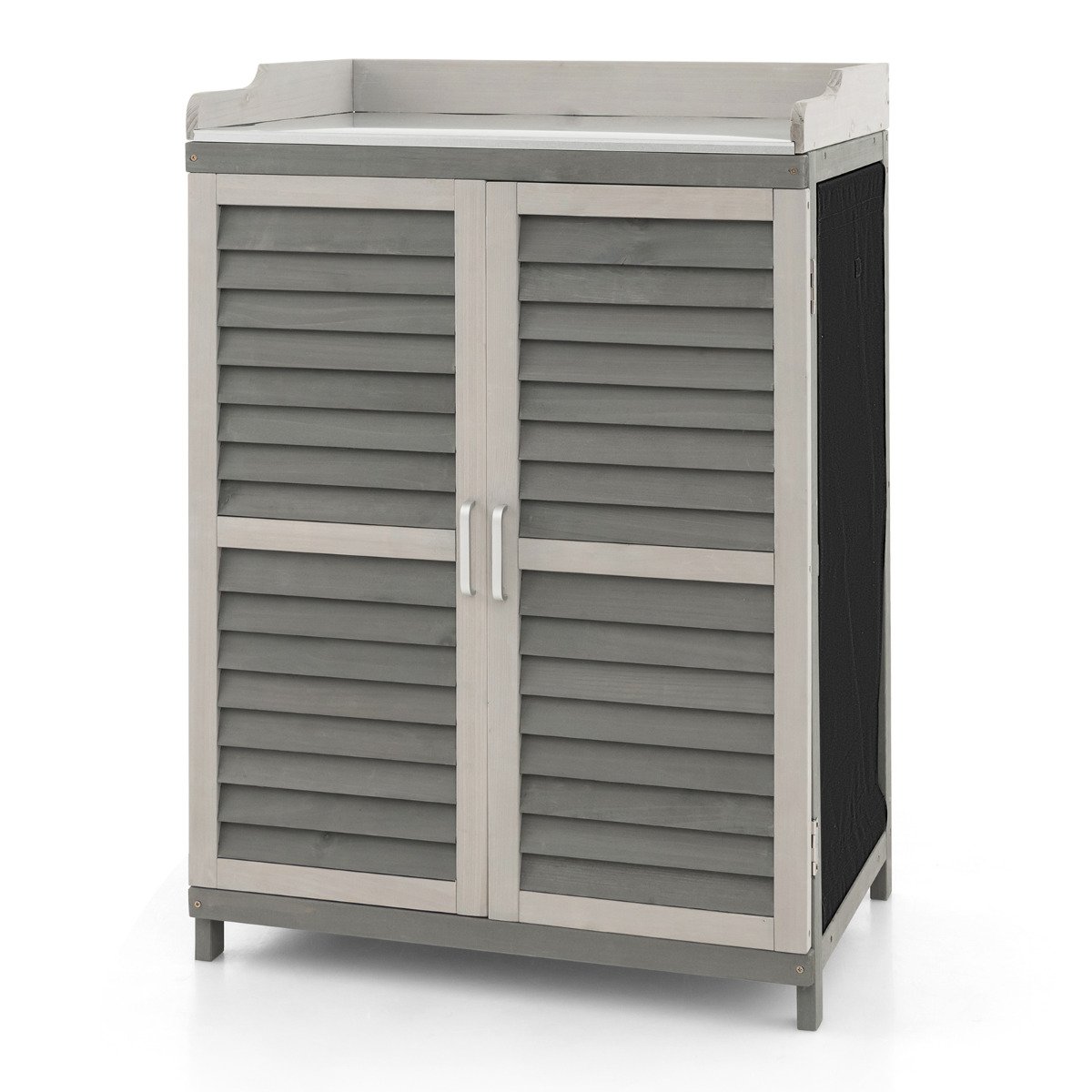 Bancada de jardim para jardinagem com 2 prateleiras de armazenamento e tampo de metal cromado – Cinza