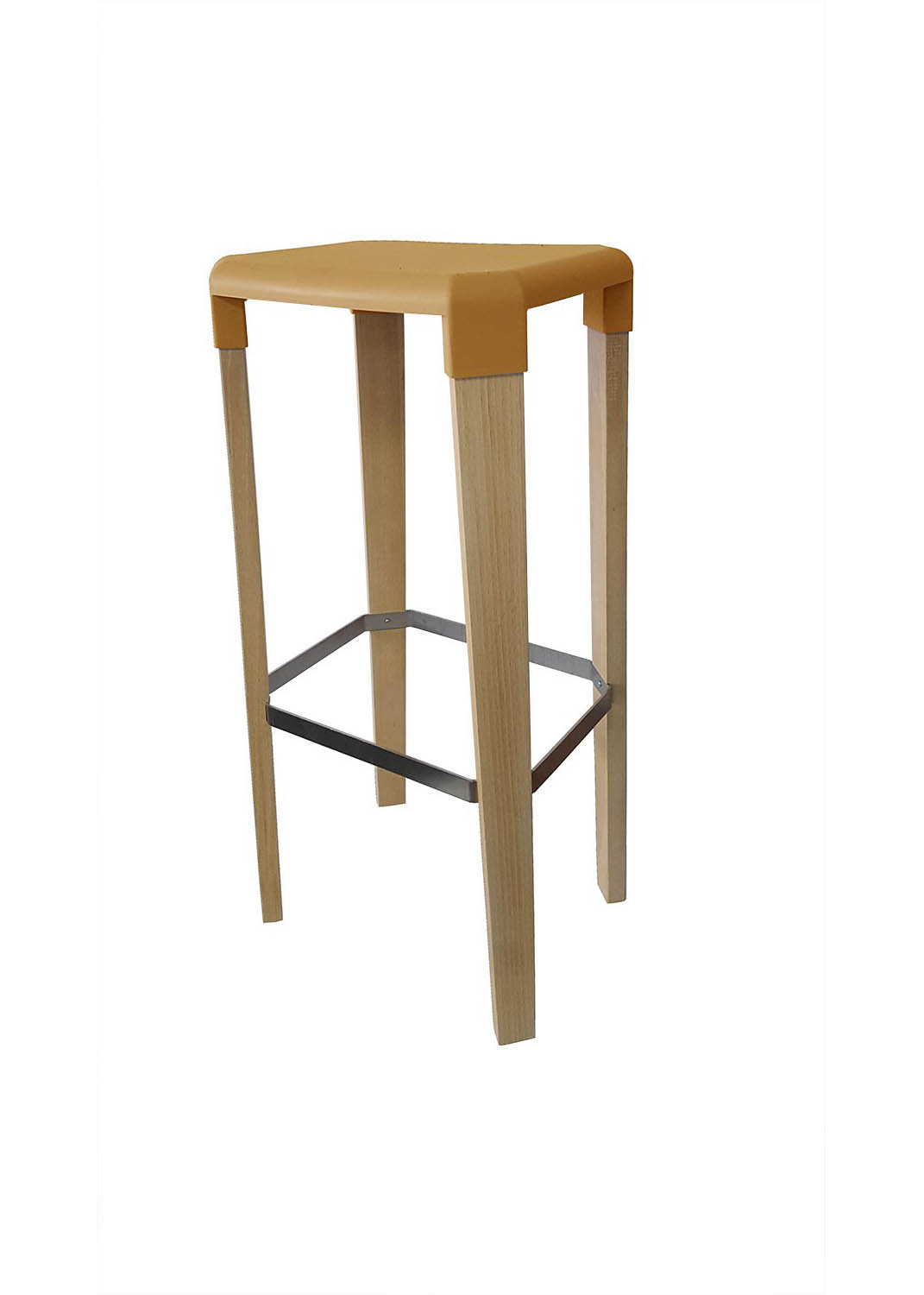 Banco Alto OSLO 78H, Perna Madeira – Pack 4 unidades, Mostarda