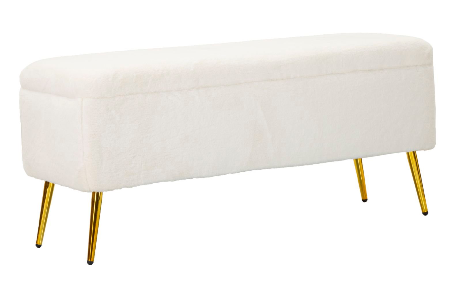 Banco com recipiente e pés dourados para montar, revestido em pele sintética macia. Ideal para ambientes modernos e requintados, acrescenta um toque de luxo e conforto.