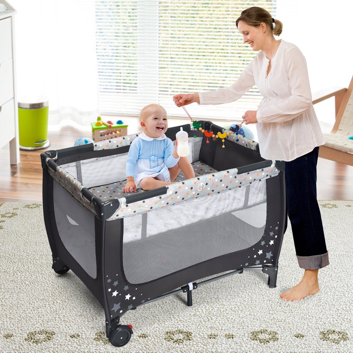 Nosso berço pode ser convertido em cama de atividades, cercadinho ou berço, de acordo com as diferentes necessidades do seu filho. Sua estrutura de ferro e o tecido Oxford combinam conforto e robustez. A tela respirável garante uma circulação de ar eficaz e permite que você fique atento ao bem-estar do seu filho. Nosso cercadinho pode ser dobrado rapidamente, tornando-se compacto e facilitando o transporte. O design com duas rodas garante a fixação segura do berço. Sua superfície resistente à sujeira simplifica a limpeza e a manutenção. Características: 【Design Multifuncional】O bebê cresce muito rápido, e nosso cercadinho pode ser facilmente convertido em cama de atividades, cercadinho e berço, atendendo às diversas necessidades dos bebês em diferentes fases de crescimento. 【Estrutura Robusta e Material Durável】A estrutura de 7 pontos de apoio melhora a estabilidade geral. A estrutura de ferro de alta qualidade garante grande capacidade de carga e longa vida útil. Além disso, utilizamos tecido premium, atóxico e inodoro. 【Tela Respirável】Cercado por paredes de tela densa e revestido com tecido Oxford macio e agradável à pele, nosso berço proporciona ao seu bebê um lugar confortável para dormir e brincar à vontade. Suas quatro laterais em tela garantem uma circulação de ar eficaz, permitindo que você cuide melhor do seu bebê. 【Design Dobrável e Portátil】Com seu design dobrável, você pode dobrá-lo rapidamente em um tamanho compacto e guardá-lo na bolsa de transporte, o que facilita muito o transporte e as viagens. Além disso, as 2 rodas com freios são convenientes para o transporte e fixam o berço com segurança. 【Fácil Montagem e Limpeza】Você pode montar nosso cercadinho facilmente com todos os acessórios necessários. Além disso, a superfície resistente à sujeira simplifica as etapas de limpeza e manutenção, economizando muito tempo e energia. Características: Design multifuncional que atende às diversas necessidades do bebê. Tecido Oxford atóxico que protege a pele delicada do bebê. Tela respirável que promove a circulação de ar no berço. Estrutura de 7 pontos de apoio que melhora a estabilidade geral. Alta capacidade de carga, suportando até 15 kg. Bolsa de transporte e 2 rodas com freios para facilitar o transporte. Design dobrável que facilita o armazenamento e o transporte. Superfície resistente à sujeira que simplifica a limpeza e a manutenção.