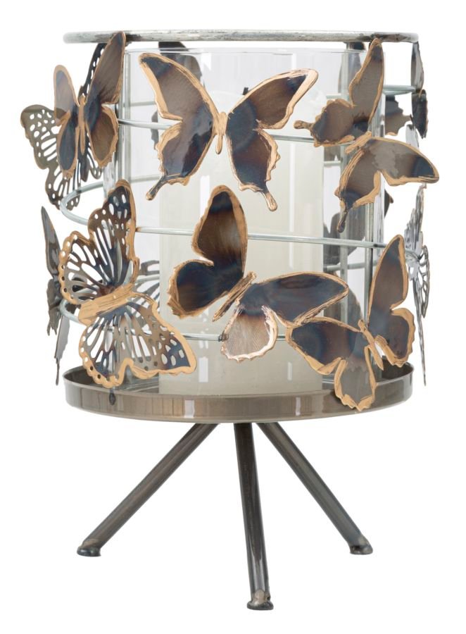 Castiçal em metal e vidro com espiral borboleta com um design particular que torna cada ambiente especial.