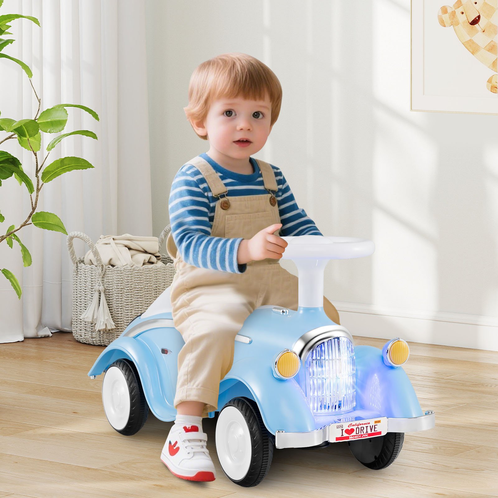 Desperte alegria e aventura com nosso brinquedo de passeio para crianças! Projetado com um assento curvo e antiqueda, este carro que vai do pé ao chão é seguro e confortável para andar. O compartimento de armazenamento sob o assento é ideal para organizar os pertences do seu filho. Graças à direção limite de 36° e ao suporte robusto nas 4 rodas, o carrinho de brinquedo é mais seguro e estável. As crianças podem aproveitar o som da buzina e as luzes LED brilhantes com apenas um toque no botão. Além disso, as rodas resistentes ao desgaste e antiderrapantes garantem passeios suaves e silenciosos em várias superfícies. Com uma aparência retrô, este brinquedo de passeio promete horas infinitas de exploração alegre tanto em ambientes internos quanto externos. Como um presente perfeito para crianças, o carrinho de passeio é propício ao seu desenvolvimento, ajudando a promover o equilíbrio, as habilidades motoras, os músculos das pernas, a confiança e muito mais. Passeio com diversão sem fim: Este carrinho de passeio é fácil para as crianças andarem com um volante fácil de operar. Ao pressionar o botão abaixo, as crianças podem ativar as luzes LED brilhantes e o som da buzina, mantendo-as alegremente envolvidas. Observação: 3 pilhas AA são necessárias, mas não incluídas. As luzes desligam-se automaticamente após 10 segundos. Design seguro e estável: combinando segurança com estabilidade, o brinquedo de passeio para crianças possui uma direção de limite de 36° e um design de suporte de 4 rodas estável. Ele está em conformidade com ASTM e CPSIA, proporcionando a você a tranquilidade de saber que seu filho está andando com segurança. Assento curvo com armazenamento: este carro pé-chão oferece um assento curvo para maior conforto e um design anti-queda para segurança. Abaixo do assento, há um compartimento de armazenamento perfeito para guardar os brinquedos e itens essenciais do seu filho, adicionando praticidade ao aconchego. Rodas suaves e silenciosas: equipado com rodas resistentes ao desgaste e antiderrapantes, o brinquedo de passeio pé-chão garante um passeio suave e silencioso em várias superfícies. Seja em ambientes internos ou externos, essas rodas premium prometem horas de diversão em pisos de madeira, estradas de asfalto, pisos de cimento ou estradas de borracha. Presente brilhante para crianças pequenas: com seu charme retrô, este carrinho de brinquedo é um presente fantástico para crianças de 19 a 36 meses. Através de aventuras, os pequenos exploradores podem aprimorar o equilíbrio, desenvolver habilidades motoras, exercitar os músculos das pernas e ganhar confiança.