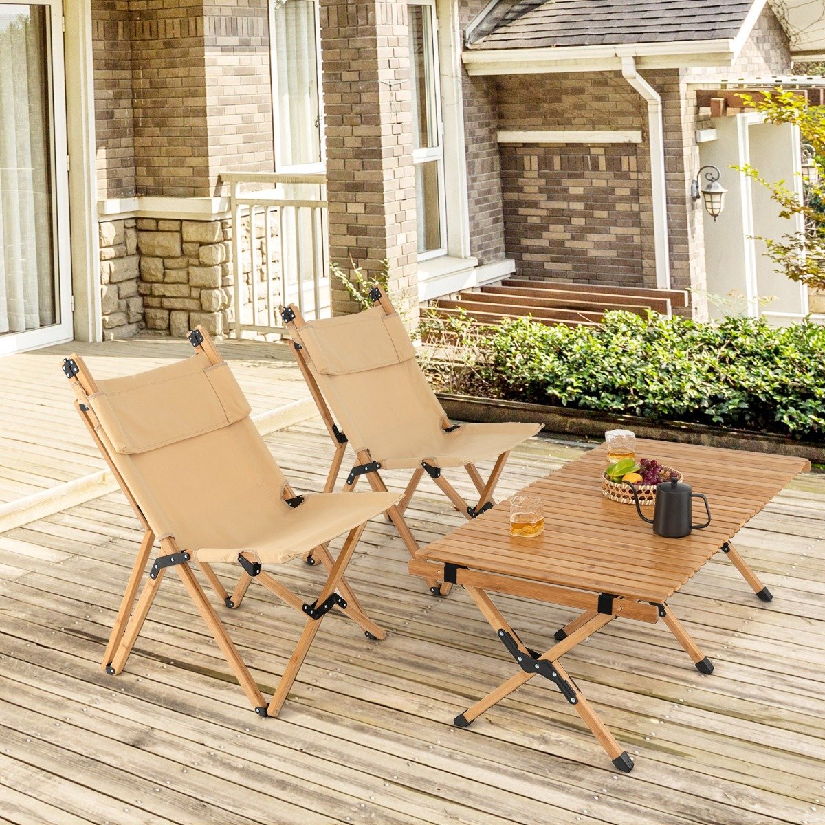 Cadeira de camping dobrável e portátil em bambu com encosto ajustável em 2 níveis.