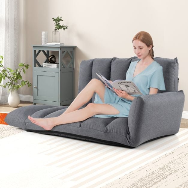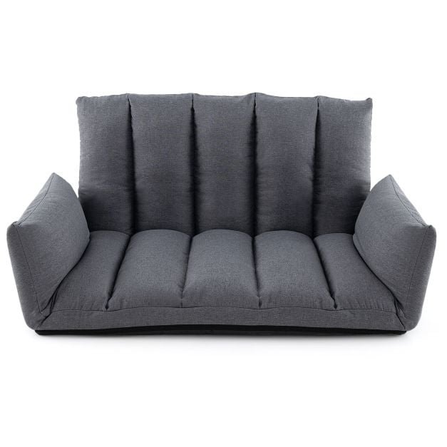 Sofá de chão dobrável com encosto e braços ajustáveis em 5 posições – Cinza