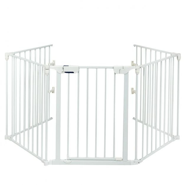 Escolha este portão de segurança multifuncional e durável e você não se arrependerá! Por que escolher este portão de segurança? Multifuncional com 5 painéis: Vindo com 5 painéis, esta cerca pode ser um portão independente para animais de estimação quando você o torna redondo ou uma porta para bebês quando você deseja configurar uma área dividida em sua casa. Além disso, também pode ser um cercadinho portátil ou uma barreira de segurança para trabalhar no corredor, escadas ou lareira. Construção de aço durável: Feito de aço premium, este portão de segurança é robusto o suficiente para suportar a tortura de crianças pequenas. Comparado aos portões de madeira, os cães não rangem os dentes para sair do nosso portão. O revestimento em pó espesso garante que o cercadinho não enferruje ou corroa facilmente. Portão de balanço de segurança: A barreira de segurança é projetada com um portão de balanço para fácil entrada com uma função giratória. E a porta fechará automaticamente se o ângulo de abertura for inferior a 90 graus. Ele também possui um sistema de travamento manual que requer que você empurre o dispositivo para abrir ou travar a porta. Design de parede e autônomo: Existem duas maneiras de instalar esta cerca de aço: ela pode ser fixada na parede com 4 kits de montagem fornecidos por nós. Ou, se você dobrar a cerca em um formato fechado, ela certamente ficará em pé sozinha. Cerca configurável e conveniente: Esta barreira de segurança possui 5 painéis que podem ser ajustados em qualquer formato que você desejar, como retangular, circular ou curvo, para caber em vários lugares. Se não houver necessidade de usá-lo, o portão pode ser dobrado para maximizar a eficiência de espaço. E cada painel também pode ser adicionado para expandir áreas amplas ou removido conforme necessário. Não hesite em adquiri-lo agora!
