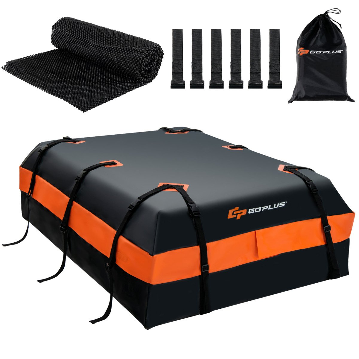 Caixa de teto impermeável com capacidade de 600 litros para todos os veículos, 132x100x43cm, preta e laranja.