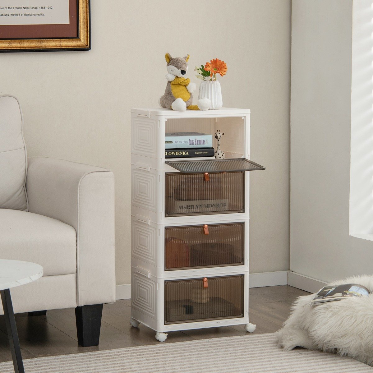Caixa organizadora de sapatos empilhável de 3/4/6 níveis com rodas com trava - 4 níveisCaixa organizadora de sapatos empilhável de 3/4/6 níveis com rodas com trava – 4 níveis
