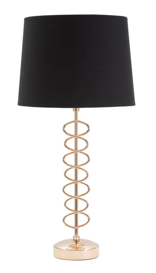 Candeeiro de mesa em metal dourado com abajur em tecido preto. O acabamento da base, simples e elegante, e o contraste entre o preto e o dourado dão um toque de requinte a qualquer ambiente.