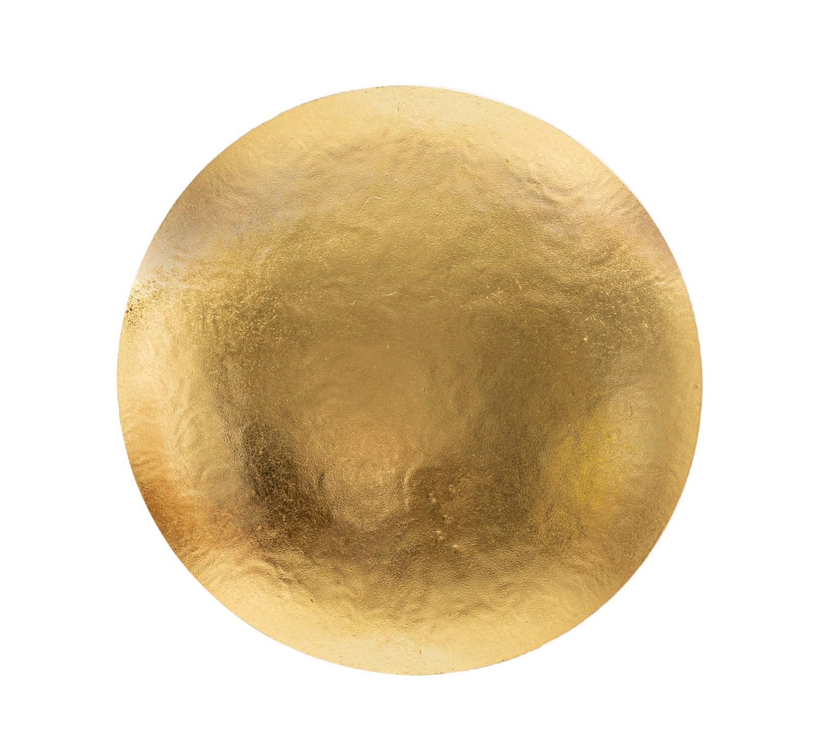 Candeeiro de parede com 1 ponto de luz em metal dourado de formato redondo e acabamento em folha de ouro.