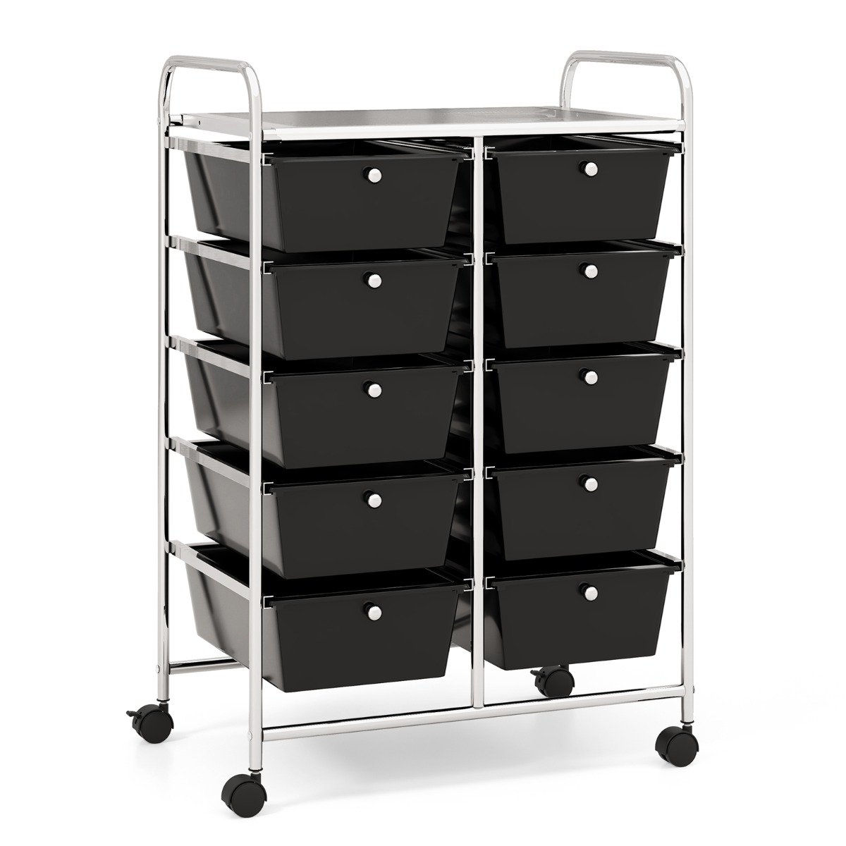 Carrinho de armazenamento com 10 gavetas e rodízios - PretoCarrinho de armazenamento com 10 gavetas e rodízios – Preto