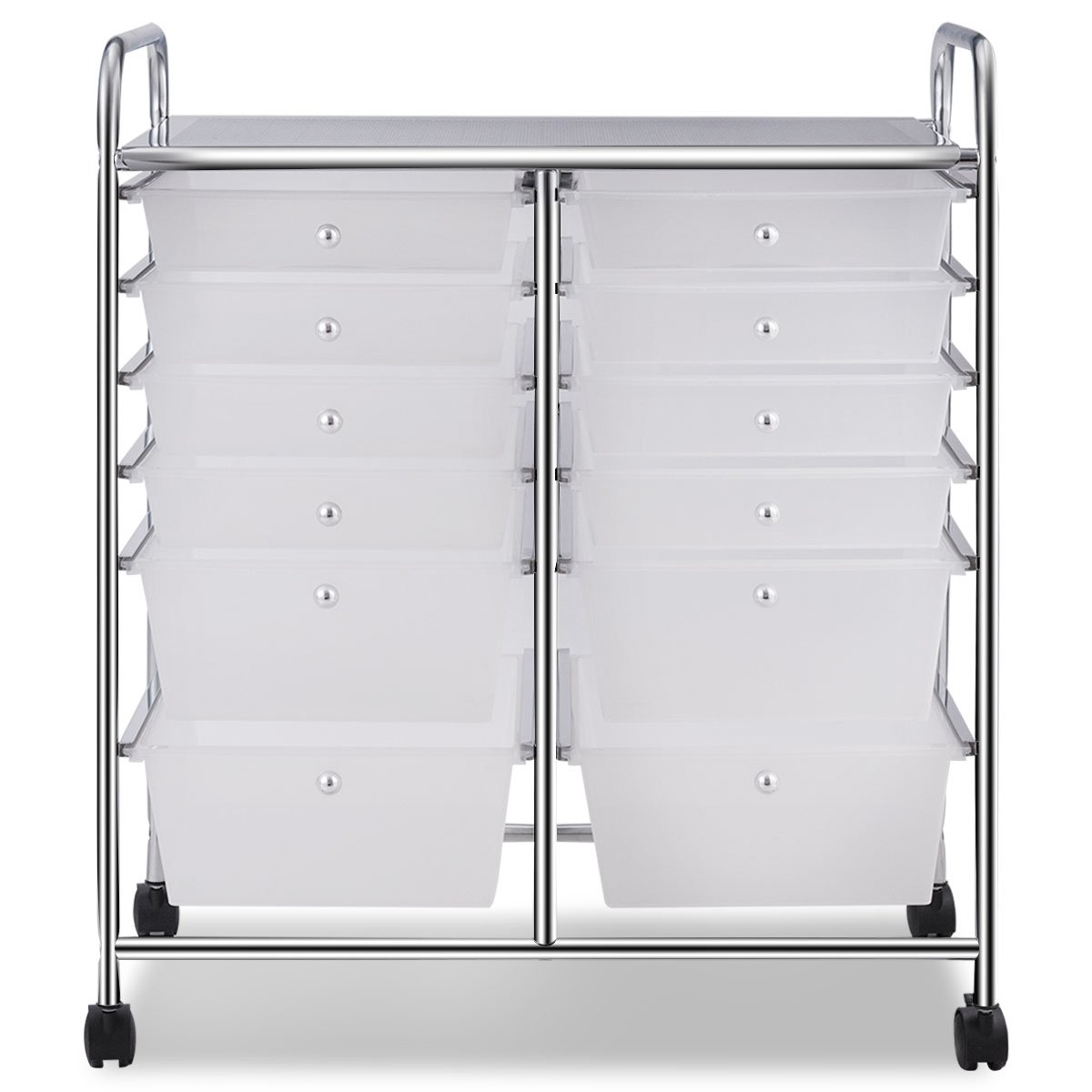 Carrinho de armazenamento móvel com 12 gavetas, sendo 2 com fechadura, ideal para casa ou escritório.