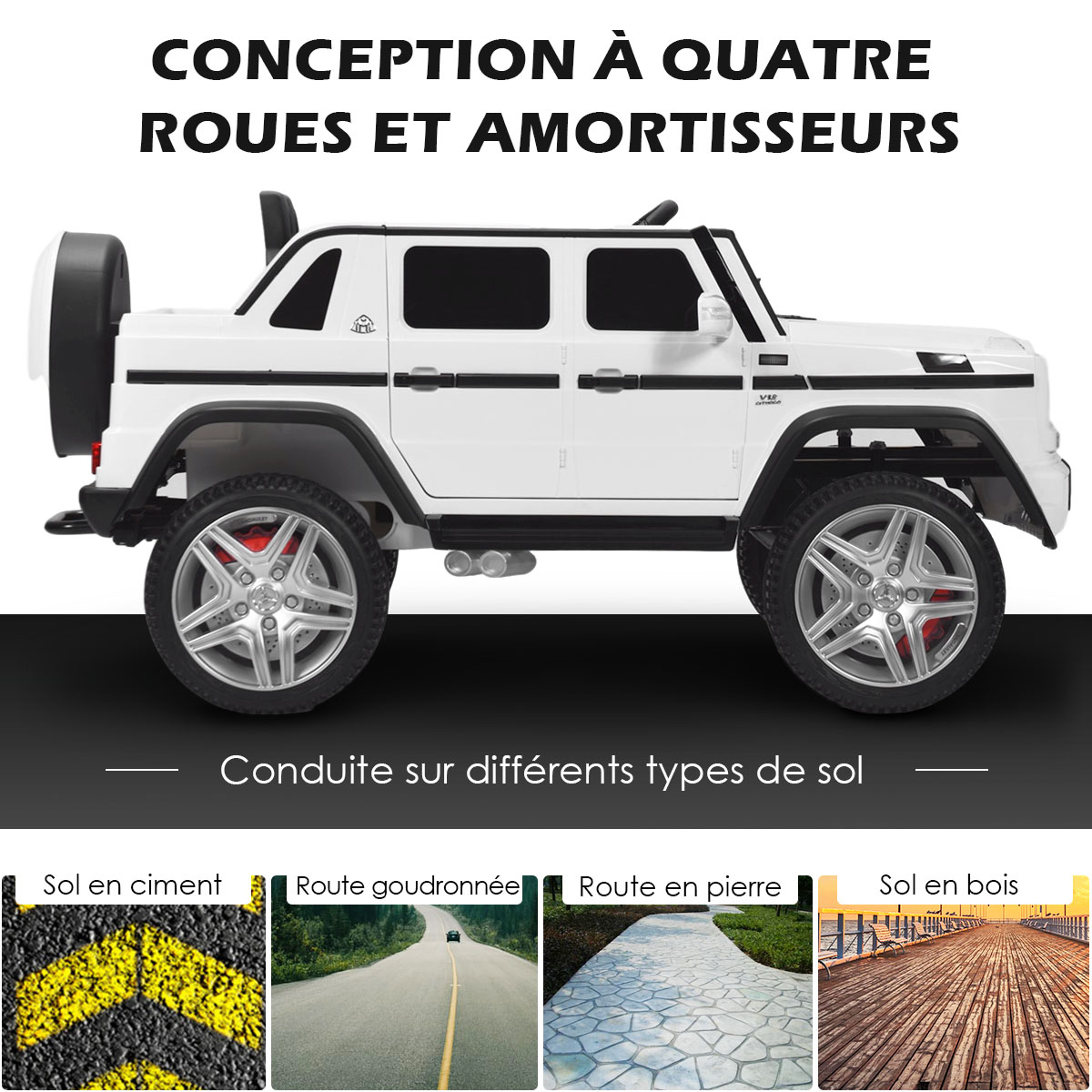 Carrinho infantil 12V com controle remoto 2.4G, música e luzes de LED, branco, 115 x 67 x 57 cm.