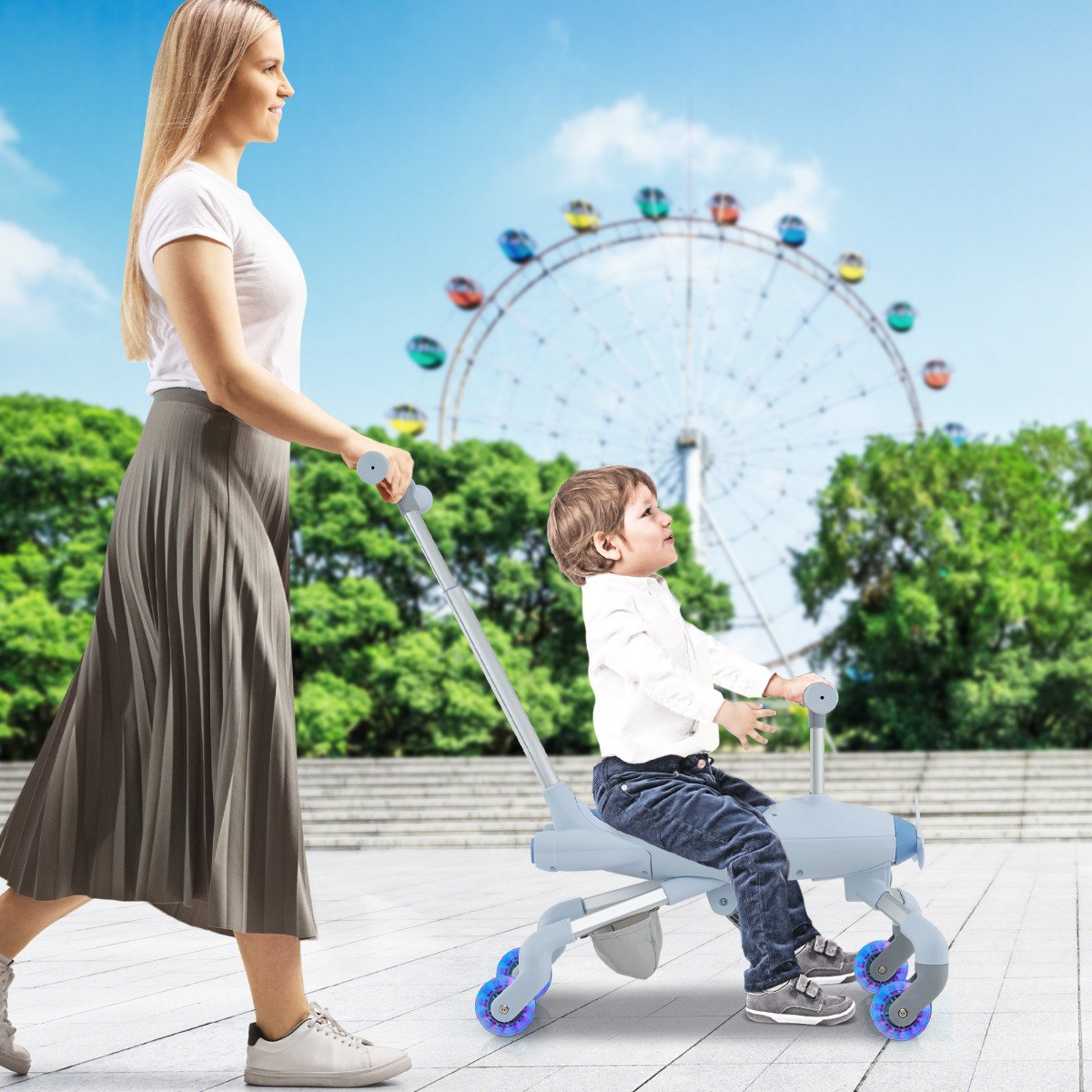 Transforme viagens em memórias inesquecíveis com este carrinho de passeio para crianças 2 em 1! Este carrinho de passeio alterna entre um modo de empurrar para os pais e um modo dirigido pela criança, atendendo a crianças de diferentes idades. Garantindo o conforto dos pais, o brinquedo de passeio possui uma alça de pais ajustável em 4 posições com um design destacável. Enquanto o guidão antiderrapante e o assento de PU aconchegante proporcionam conforto para as crianças. Nunca faltando entretenimento, o carrinho de passeio inclui luzes LED coloridas para diversão incomparável. Feito com tubos de alumínio premium e rodas de PU, este carrinho de passeio é construído para durar conforme seu filho cresce. Além disso, a grande cesta de armazenamento permite fácil acesso a brinquedos e itens. Com um design temático de avião, este carrinho de brinquedo de passeio é o presente perfeito para crianças de 18 a 70 meses de idade. Ele melhora o desenvolvimento da confiança, equilíbrio e habilidades motoras, ao mesmo tempo que promove a interação entre pais e filhos. BulletPoint: Design conversível 2 em 1: O carrinho de passeio para crianças 2 em 1 transita facilmente entre o modo de empurrar dos pais e o modo dirigido pela criança, adequado para crianças de diferentes idades. Este design inovador apresenta uma alça de empurrar destacável e apoios para os pés dobráveis, garantindo um processo de transformação perfeito. Amigável para crianças e pais: Projetado com seu conforto em mente, este brinquedo de passeio é equipado com uma alça de pai ajustável em 4 posições para atender a diferentes alturas dos pais. O guidão antiderrapante e o assento de PU preenchido com esponja de alta resiliência fazem com que as crianças se sintam seguras e confortáveis em todas as viagens. Entretenimento em movimento: Este carrinho de passeio vai entreter seu filho com suas luzes LED coloridas. Durante a condução, as luzes brilham e a hélice gira. Além disso, as rodas de PU todo-terreno atravessam várias superfícies, como estradas de asfalto, pisos de madeira, estradas de cimento ou pastagens. Bem trabalhado para confiabilidade: Construído com tubos de alumínio antiferrugem, o carrinho de passeio 2 em 1 é leve, mas resistente. Atende às normas ASTM e CPSIA, suportando até 50 kg e proporcionando tranquilidade aos pais. Graças ao amplo cesto de armazenamento, as crianças podem levar facilmente seus brinquedos favoritos ou outros itens. Presente perfeito para crianças: com um visual inspirado em aviões, este carrinho de brinquedo é um presente ideal para crianças de 18 a 70 meses. Seja usado em ambientes internos ou externos, este carrinho de passeio para crianças pequenas estimula a confiança, o equilíbrio e o desenvolvimento das habilidades motoras, ao mesmo tempo que fortalece a interação entre pais e filhos. Características: Modo de empurrar para os pais para crianças de 18 a 36 meses de idade Modo de andar para crianças entre 37 e 70 meses de idade Alça ajustável para os pais em 4 posições, adequada para pais de diferentes alturas 2 rodas dianteiras universais para desempenho resistente ao desgaste, antiderrapante e silencioso Luzes LED coloridas e sem bateria nas rodas oferecem uso conveniente Tubos de alumínio à prova de ferrugem para durabilidade e robustez Guidão antiderrapante, assento de PU confortável e apoios para os pés integrados garantem conforto Grande cesta de armazenamento torna os pertences das crianças facilmente acessíveis Adequado para cenários internos e externos Presente perfeito para crianças de 18 a 70 meses de idade com um design com tema de avião Promove a confiança, a capacidade de equilíbrio, as habilidades motoras e a interação entre pais e filhos Em conformidade com CPSIA e ASTM para maior confiabilidade Especificações: Cor: Azul/Rosa Materiais: PU, Alumínio, TPR, PP, PPGF Dimensão do produto: 83 x 34 x 73/81,5/86,5/91,5 cm (C x L x A) Tamanho do assento Almofada: 24 x 10 cm (C x L) Altura do guidão: 47 cm Altura do assento: 28 cm Peso líquido: 4 kg Capacidade de peso: 50 kg Idades adequadas: 18 a 70 meses O pacote inclui: 1 carrinho de passeio para crianças 1 instrução