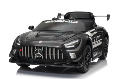 Carrinho elétrico infantil Mercedes-AMG GT3 licenciado, com controle remoto e 3 velocidades, na cor preta.