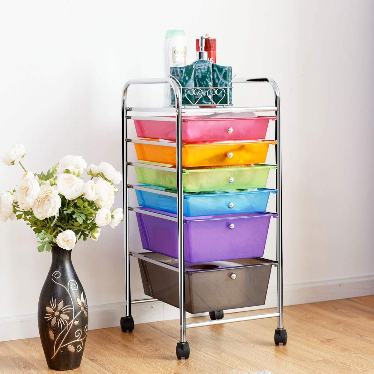 Carrinho Organizador com 6 Gavetas e Rodízios - Transparente MulticoloridoCarrinho Organizador com 6 Gavetas e Rodízios – Transparente Multicolorido