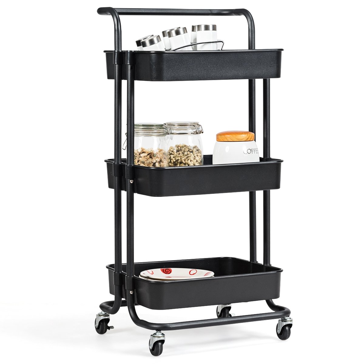 Carrinho utilitário de armazenamento com 3 níveis e rodízios - PretoCarrinho utilitário de armazenamento com 3 níveis e rodízios – Preto
