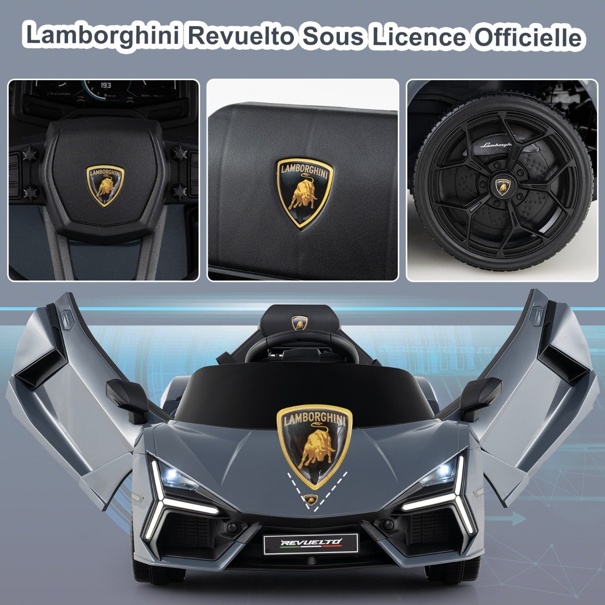 Carrinho Elétrico Infantil Lamborghini Revuelto Licenciado 12V com Controle Remoto e Portas Hidráulicas para Crianças de 37 a 95 Meses – Cinza
