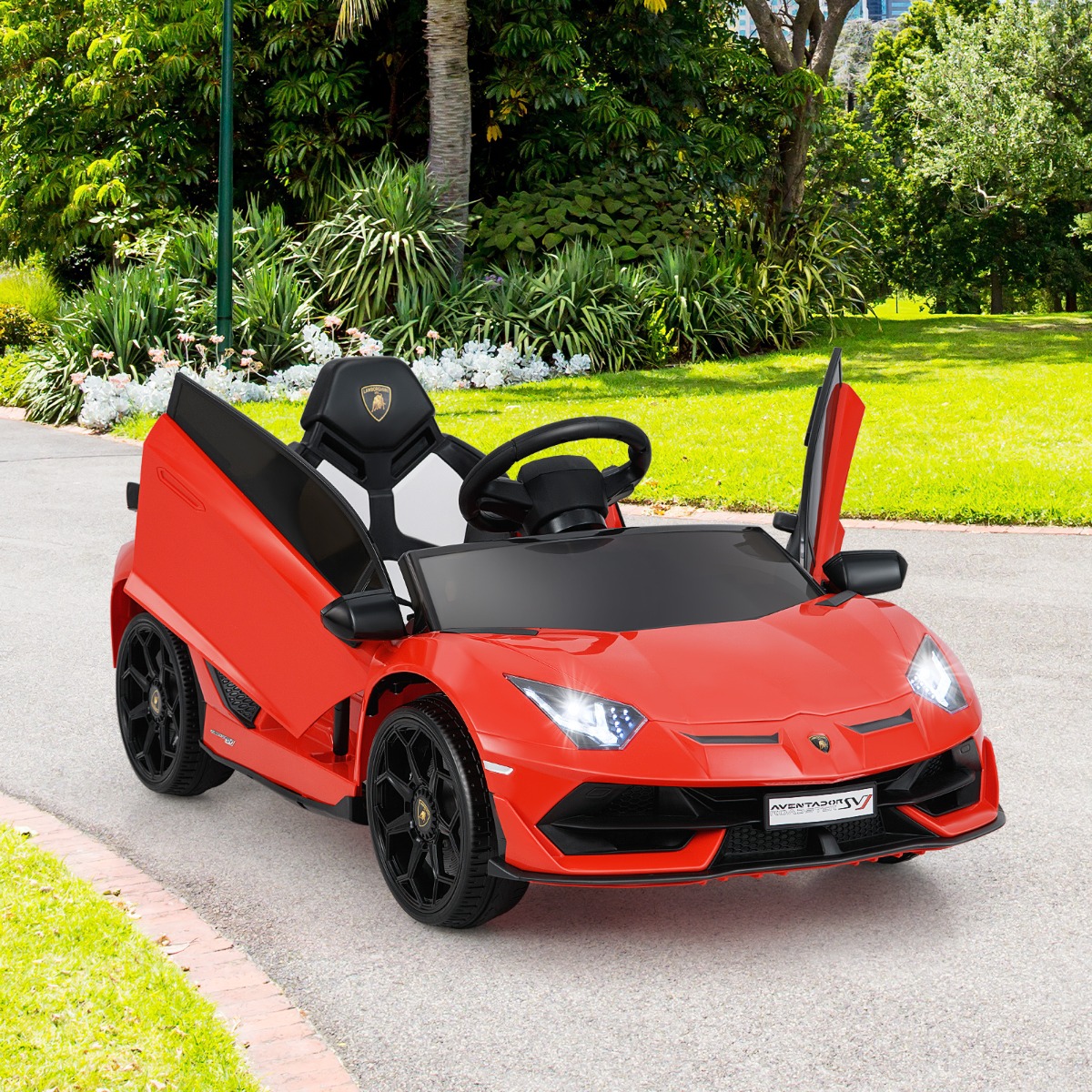 Carrinho Elétrico de Brinquedo Lamborghini 12V Licenciado para Crianças, Veículo Elétrico com Controle Remoto Vermelho
