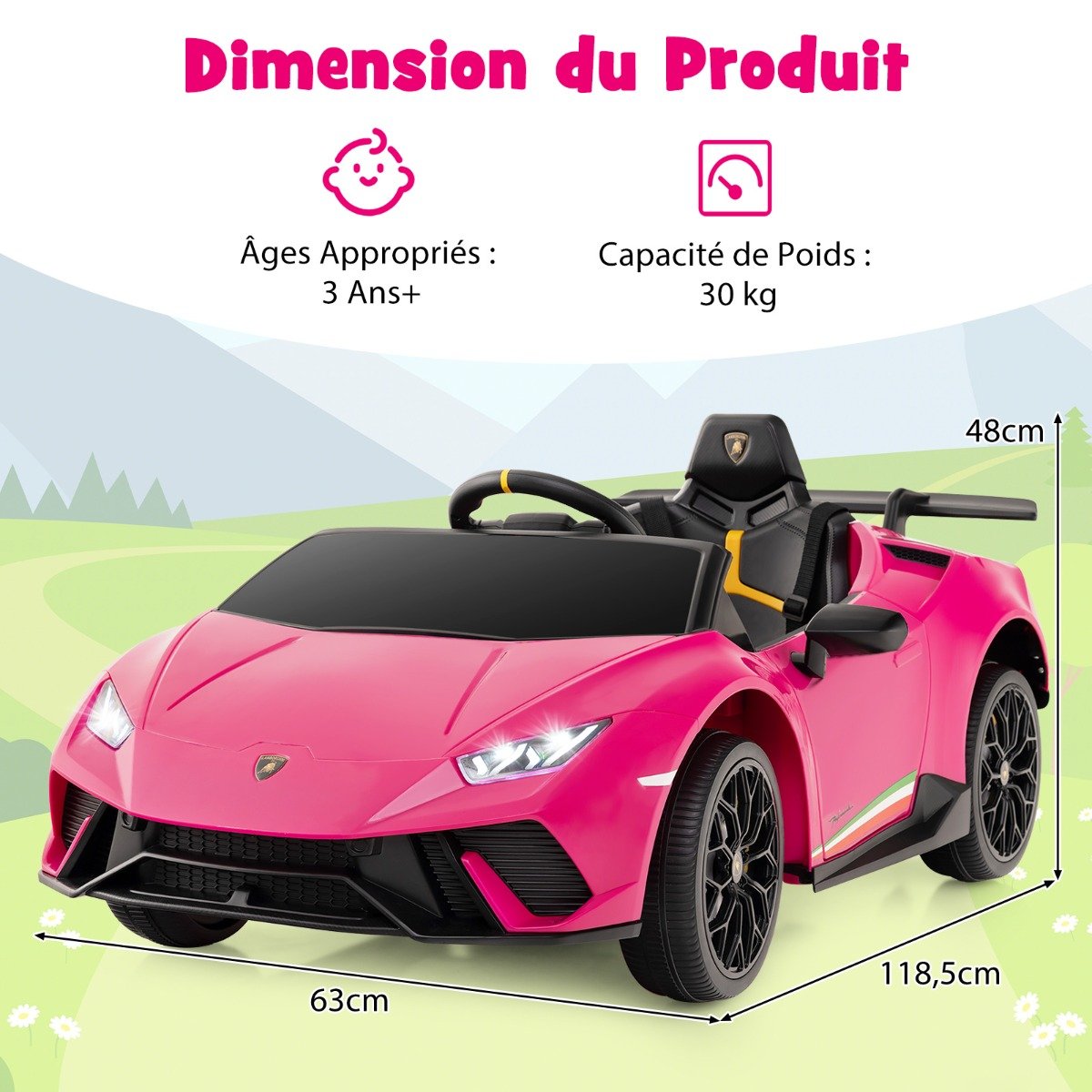 Carrinho elétrico infantil Lamborghini 12V com controle remoto rosaCarrinho elétrico infantil Lamborghini 12V com controle remoto rosa