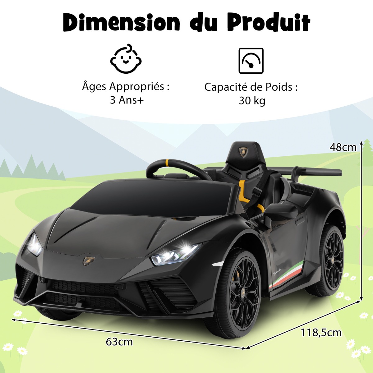 Carrinho elétrico infantil Lamborghini 12V com controle remoto, preto
