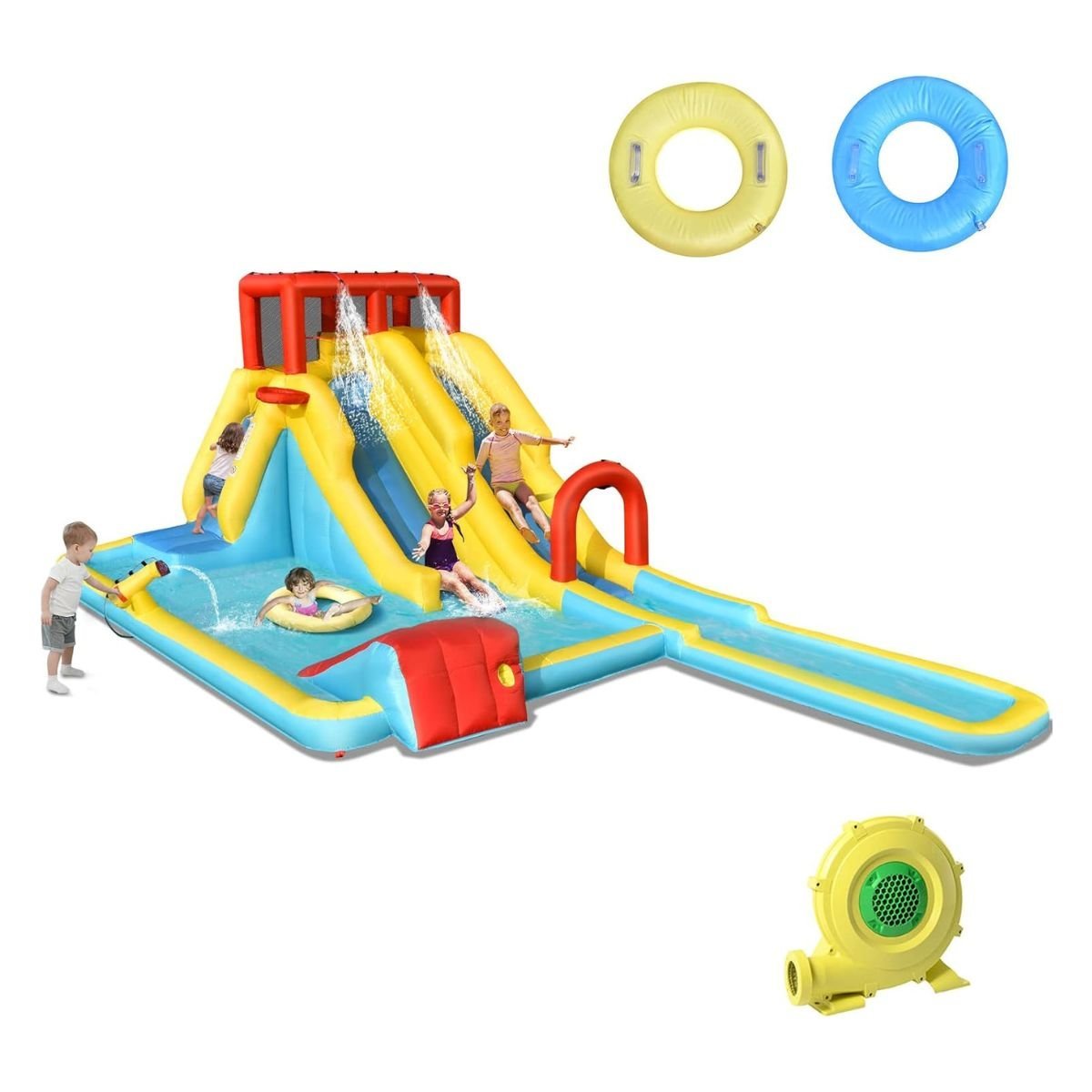 Castelo inflável para parque aquático com soprador, jatos d’água e escorregador 525 x 373 x 203 cm