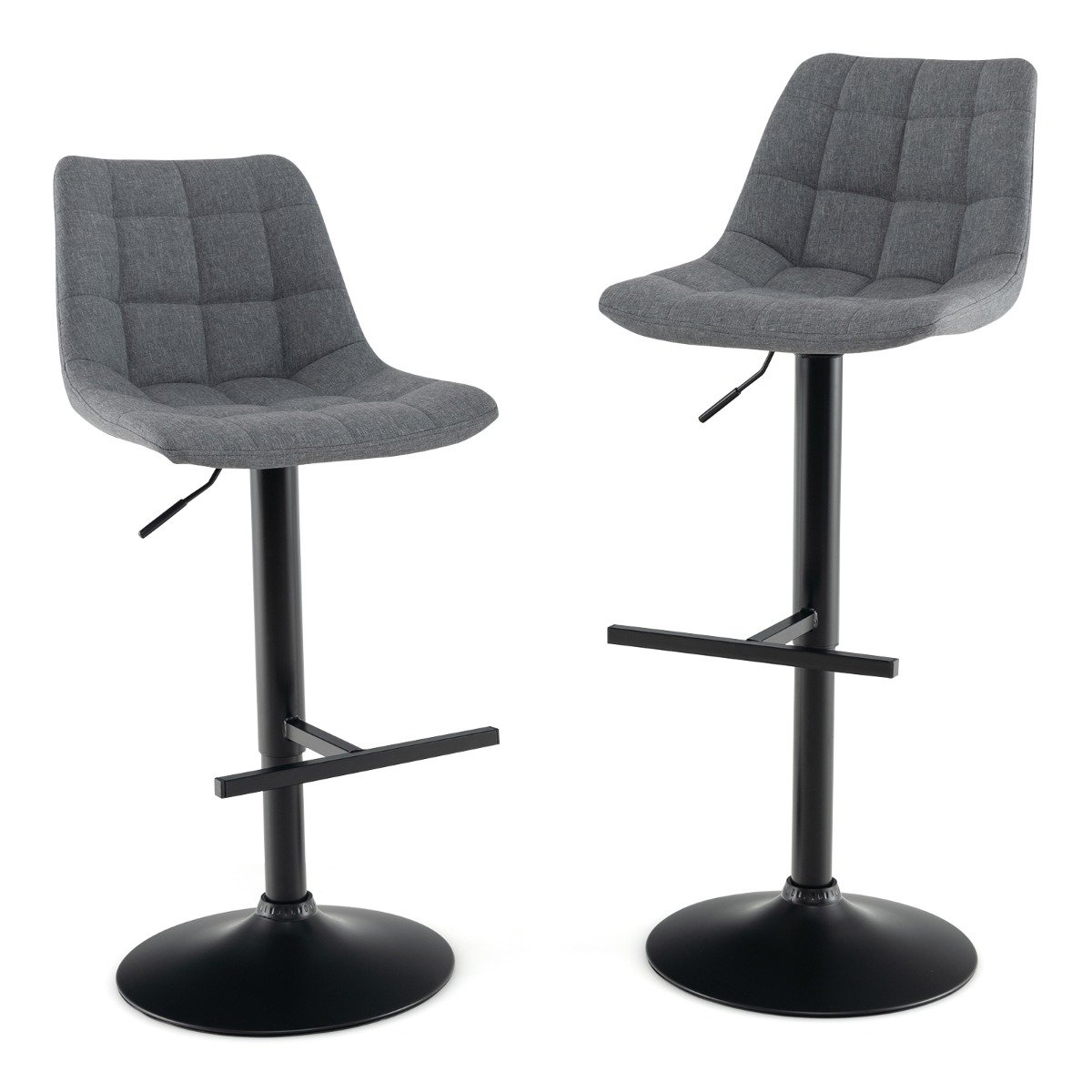 Renove seu arranjo de assentos com o conjunto de bancos de bar ajustáveis em altura! O ajuste de altura flexível garante que esses bancos de bar possam ser personalizados para caber em qualquer balcão ou altura de bar. Além disso, o recurso giratório de 360° permite fácil movimento e flexibilidade, tornando conveniente conversar com outras pessoas sem se mover. O encosto ergonômico e o assento acolchoado oferecem o máximo conforto para longas horas sentado. O estofamento de tecido respirável não só oferece uma sensação suave e agradável à pele, mas também adiciona um toque de sofisticação ao seu espaço. Essas cadeiras versáteis de altura de balcão fornecem conforto e apelo visual perfeito para várias ocasiões, como casa, bar e cafeteria. Altura ajustável e design giratório: os bancos de bar podem ser ajustados livremente em altura (63-83 cm) para acomodar diferentes alturas de mesa de bar. Além disso, a função giratória suave de 360° permite fácil movimento em qualquer direção, tornando-a ideal para reuniões. Conforto aprimorado: as cadeiras de bar estofadas em tecido de linho são projetadas para oferecer o máximo conforto. Apresentando um encosto ergonômico e um assento bem acolchoado, esses bancos oferecem uma experiência relaxante ao usuário. Construção confiável: o conjunto de cadeiras giratórias de cozinha é suportado por uma estrutura de metal resistente, aumentando o uso duradouro, enquanto o apoio para os pés em forma de T fornece suporte adicional para suas pernas. A base grande com anel antiderrapante fornece uma base estável para bancos. Estilo encontra funcionalidade: seja atualizando seu bar em casa ou adicionando assentos à sua área de jantar, esses bancos de bar de altura de balcão criam um local confortável. A combinação de recursos práticos e design elegante complementa qualquer estilo de casa. Fácil montagem e tamanho do produto: os bancos de bar medem 43 x 53 x 89-109 cm (C x L x A). Além disso, as cadeiras de café da manhã sem braços vêm com um manual ilustrado e todo o hardware necessário para ajudar a reduzir o tempo de montagem.