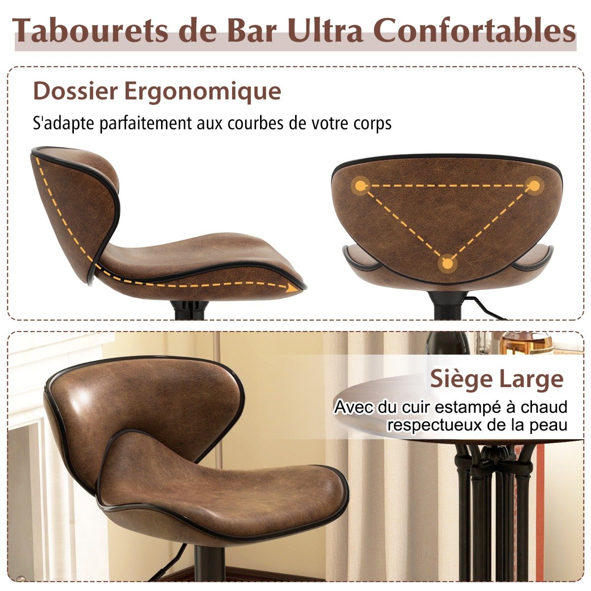 – Design giratório de 360° e ajustável em altura com alavanca de ajuste confiável – Almofadas de tecido estampadas a quente para máximo conforto – Encosto ergonomicamente curvo e apoio extra para os pés proporcionam uma experiência confortável – Anel antiderrapante e estrutura de metal resistente para maior estabilidade – Cilindro de elevação a gás certificado pela SGS e base estável para segurança – Adequado para vários cenários, como salas de jantar, cozinhas, restaurantes, etc. – Instruções detalhadas de instalação incluídas
