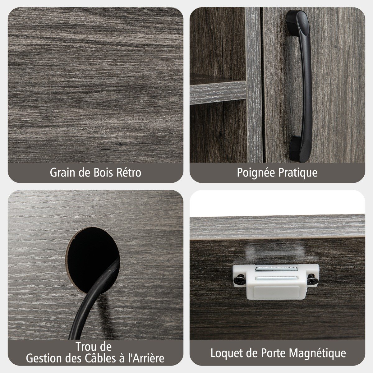 Esta mesa de console versátil oferece amplo espaço de armazenamento para manter os itens essenciais ao alcance, com porta-vinhos removíveis para necessidades de armazenamento específicas. A alça fácil de usar permite a abertura da porta sem esforço, enquanto a trava magnética da porta garante o fechamento seguro. Com uma estrutura de metal resistente e almofadas de pé ajustáveis, este aparador fornece estabilidade e suporte confiável. Para maior segurança, dispositivos anti-tombamento estão incluídos. Seja colocado na cozinha, sala de jantar, sala de estar ou entrada, esta mesa de aparador de buffet é uma adição fantástica para sua casa. Se você está procurando por um produto assim, não hesite em comprá-lo! Diversas áreas de armazenamento: O armário do bar de café possui porta-vinhos removíveis que podem acomodar 4 garrafas de vinho. Além disso, o armário com porta e prateleiras de armazenamento oferece mais opções de armazenamento para seus eletrodomésticos, cestos de armazenamento, enfeites, etc. Construção estável: Apoiada por uma estrutura de metal resistente, esta mesa de console possui durabilidade e estabilidade excepcionais. As almofadas de pé ajustáveis se adaptam a terrenos irregulares para maior estabilidade. Dispositivos anti-tombamento: Para maior tranquilidade, este armário de cozinha está equipado com dispositivos anti-tombamento que o fixam com segurança à parede, evitando qualquer risco de tombamento e garantindo a segurança da sua família. Projetado para versatilidade: Este aparador apresenta grãos de madeira retrô que conferem um toque atemporal à sua casa. Como uma boa combinação de praticidade e estética, serve bem na cozinha, sala de jantar, sala de estar, hall de entrada e outros ambientes. Recursos fáceis de usar: Graças à alça conveniente, você pode ter fácil acesso aos itens armazenados atrás da porta. Além disso, a trava magnética da porta ajuda a fechar a porta firmemente para melhor proteção.