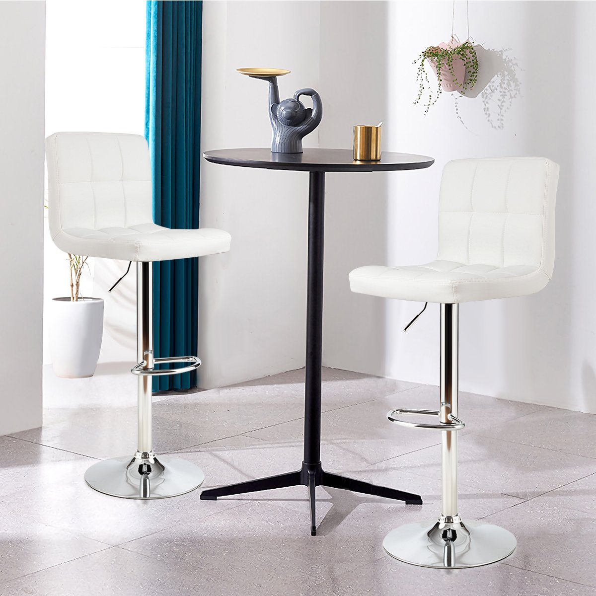 Conjunto de 2 bancos giratórios ajustáveis ​​em altura para casa - BrancoConjunto de 2 bancos giratórios ajustáveis ​​em altura para casa – Branco