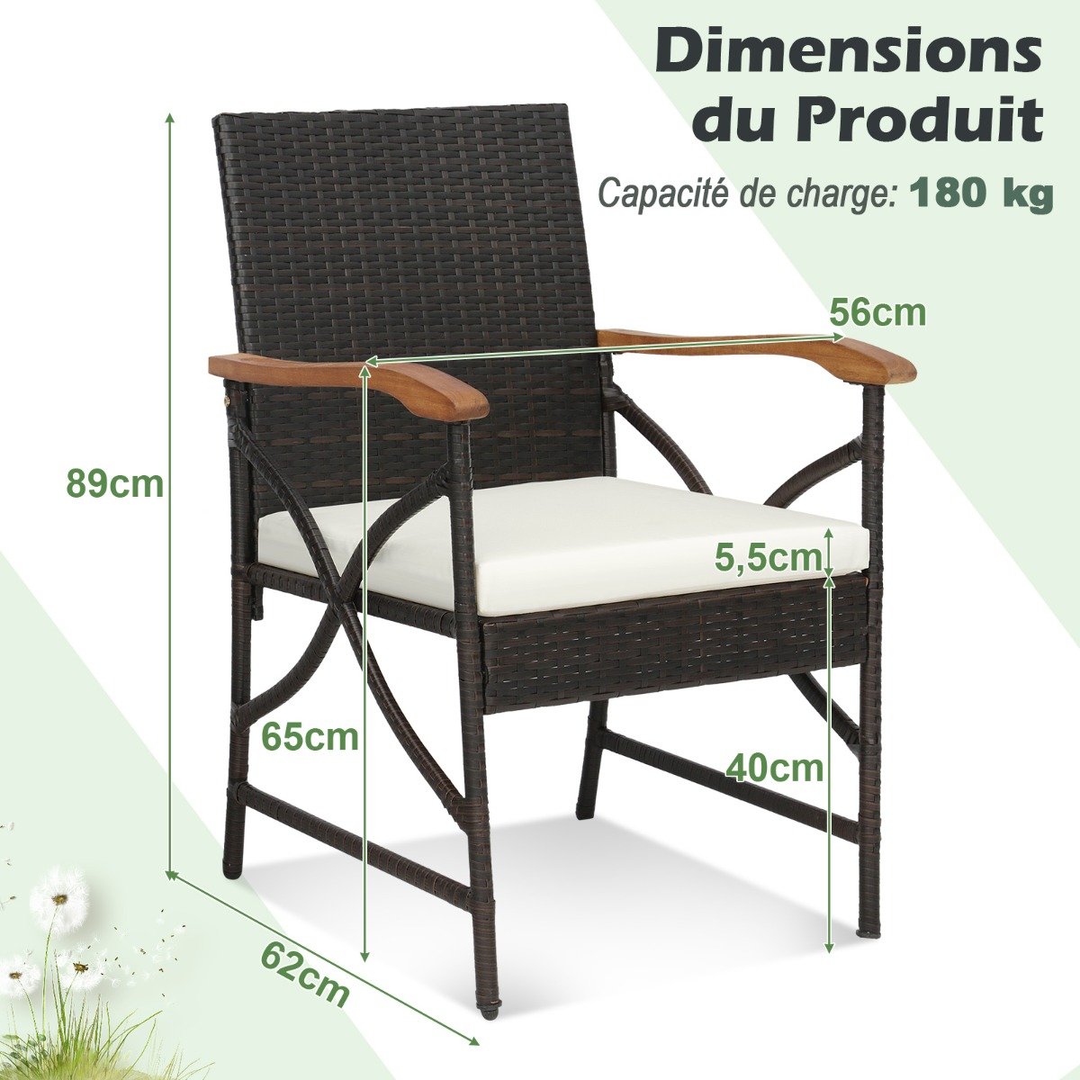 -Confortável para sentar com encosto e apoios de braços ergonômicos-A altura do assento de 16″ é adequada para a maioria das mesas de pátio-A almofada elástica do assento oferece mais aconchego-Zíperes suaves para fácil manutenção das capas de almofada-Estrutura de metal resistente em formato de X e almofadas ajustáveis ​​para alta estabilidade-Amplas aplicações, incluindo quintal, varanda da frente, piscina, etc.-Vime PE tecido à mão para mais elegância e durabilidade-A montagem é necessária e as instruções serão fornecidas-Evite a exposição à chuva para prolongar a vida útil