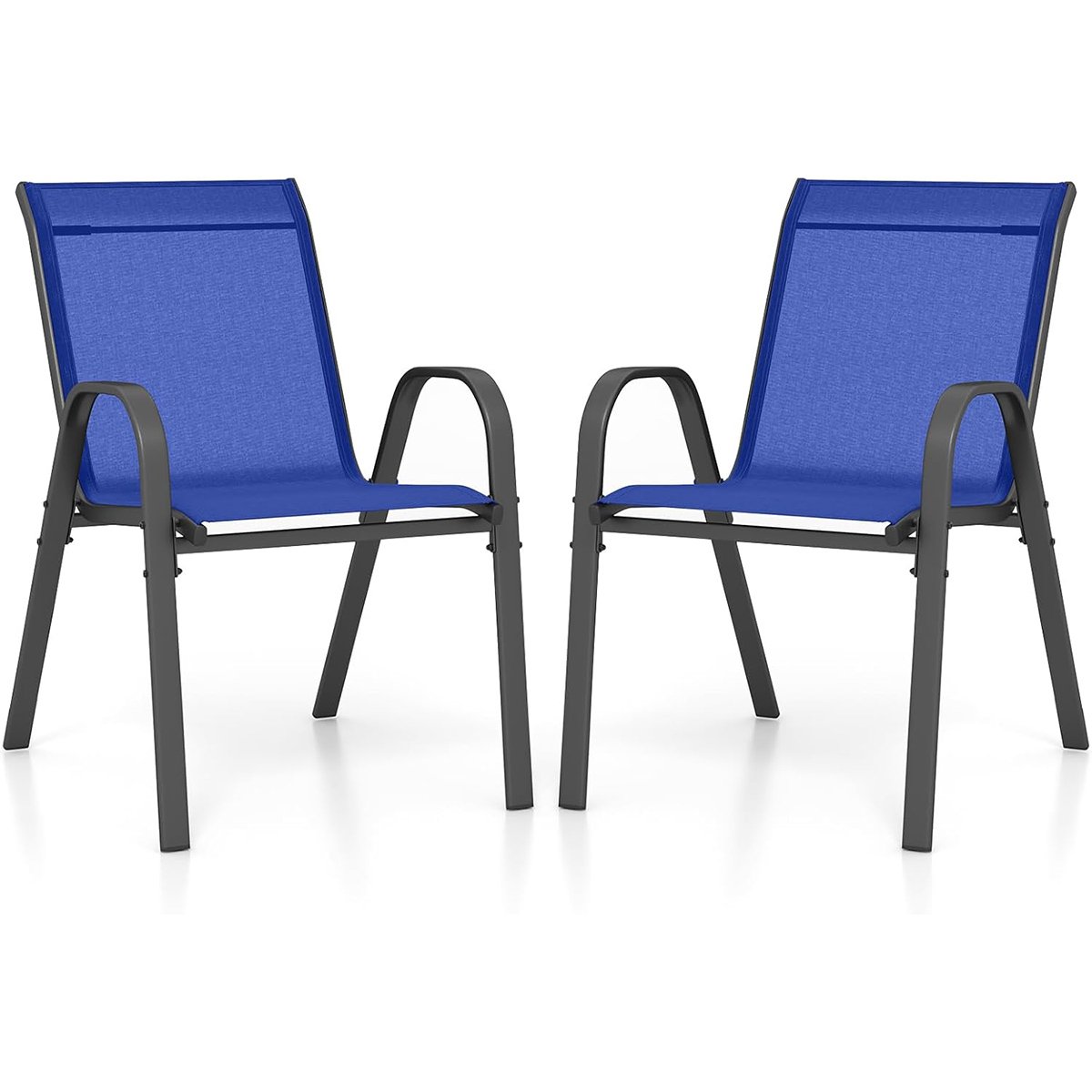Conjunto de 2 cadeiras de jantar empilháveis de metal para pátio com apoio de braços – Azul Marinho