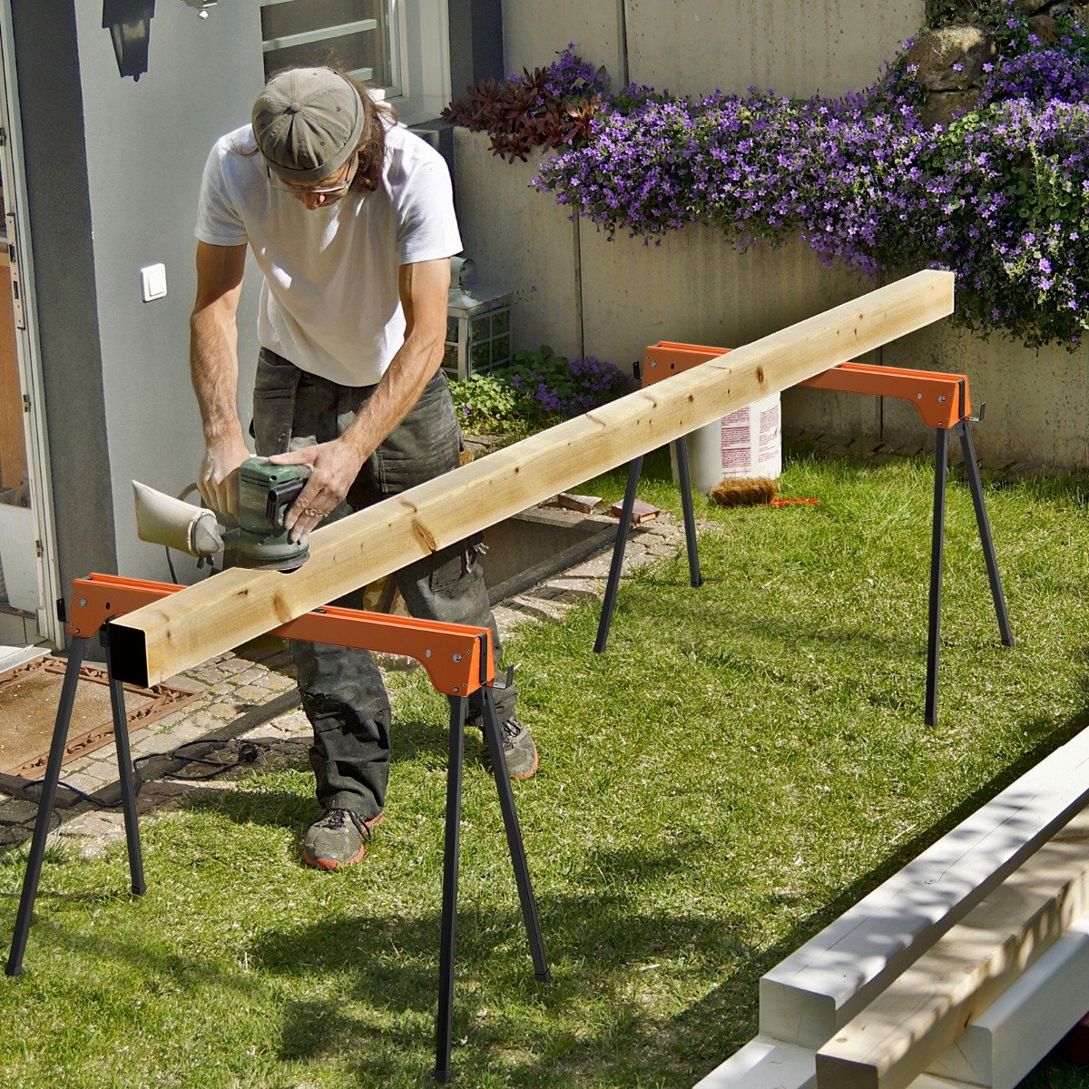 Conjunto de 2 Cavaletes de Serra Dobráveis Compactos para Ferramentas Elétricas – Laranja