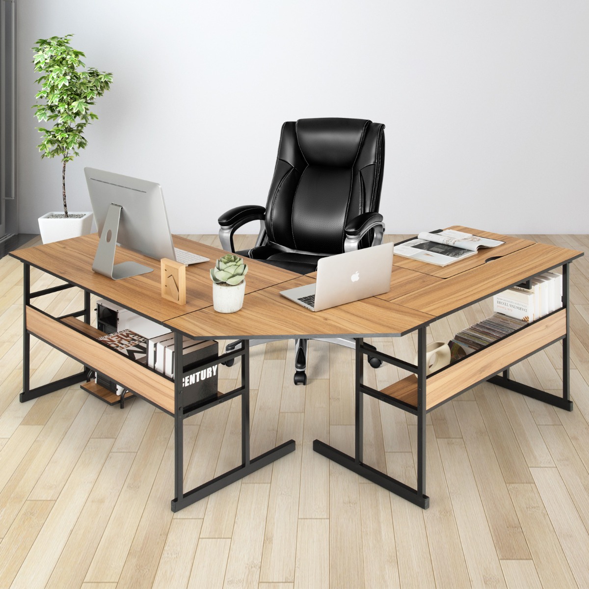 Nossa mesa de computador é ideal para sua casa e escritório! Esta mesa se encaixa exatamente em um canto e economiza muito espaço. A mesa em forma de L pode ser dividida em duas mesas separadas para atender às suas diferentes necessidades. Classificada como uma área de trabalho e descanso, esta mesa se torna o centro de atividades central da sua casa. O painel inclinado pode ser ajustado no ângulo certo, o que protege sua visão e oferece suporte ativo durante o trabalho. O suporte flexível para CPU pode ser colocado livremente de acordo com suas necessidades. 2 prateleiras abertas oferecem bastante espaço de armazenamento para livros, arquivos e outros materiais de escritório. Atributos: Design de canto em forma de L: Esta mesa foi projetada em forma de L e se encaixa perfeitamente em qualquer canto do seu escritório e sala de estudo. Ela maximiza o uso de espaço limitado, ajudando você a alternar com flexibilidade entre trabalho e lazer. O canto do meio é cortado para permitir qualquer roteamento de cabos, então também pode ser usada como uma mesa de jogos. Prancheta de desenho inclinável: esta mesa de computador possui um tampo ajustável que pode ser inclinado entre 0 e 90 graus, proporcionando o melhor ângulo para escrever, ler, desenhar, etc. A dobradiça de metal ajuda a ajustar e fixar o ângulo apropriado, evitar dores no pescoço e proteger a visão. Mesa divisível para versatilidade: esta mesa em forma de L pode ser dividida em 2 mesas após a remoção da placa do meio. Você pode personalizar a mesa separada ou combinada para atender às suas diferentes necessidades. Pode servir como mesa de computador, escrivaninha e estação de trabalho de escritório e é perfeita para seu estudo, quarto ou escritório. Estantes abertas e suportes de CPU: equipada com duas estantes abertas, esta mesa de computador em forma de L oferece amplo espaço de armazenamento para seus materiais de escritório, deixando bastante espaço para a área de trabalho. Ela vem com um suporte para host para proteger o host de danos ao chão. Acabamento fino: feita de madeira projetada de alta qualidade e estrutura de metal resistente, esta mesa de canto é estável e durável o suficiente para segurar todos os seus itens pesados. A requintada estrutura de madeira dá à sua casa um toque natural e moderno e torna a superfície lisa mais resistente ao desgaste. Características: Mesa em formato de L que se adapta a qualquer canto da sua casa Design divisível para dividir em 2 mesas Feita de madeira projetada e estrutura de metal para garantir estabilidade e durabilidade Painel de inclinação ajustável para encontrar o ângulo de desenho perfeito 2 estantes abertas para espaço de armazenamento adicional Oferece espaço suficiente para as pernas para que você possa esticá-las livremente A capacidade máxima de peso pode chegar a 205 kg Suporte de CPU flexível para fácil movimentação e uso Almofadas de pés ajustáveis para manter a mesa estável