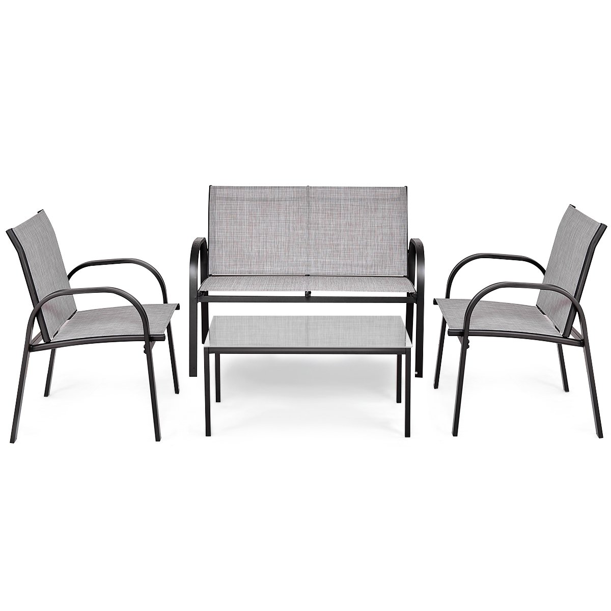 Conjunto de 4 peças de móveis para área externa com mesa de centro de vidro – Cinza